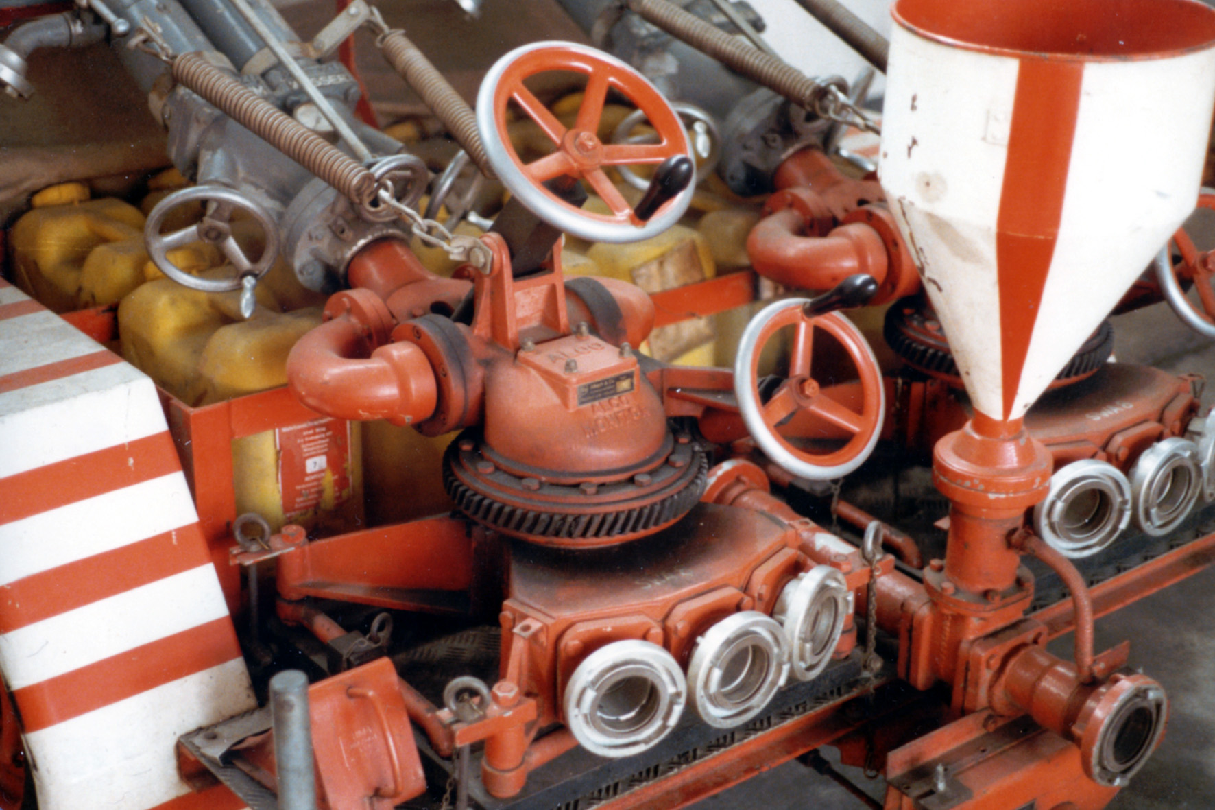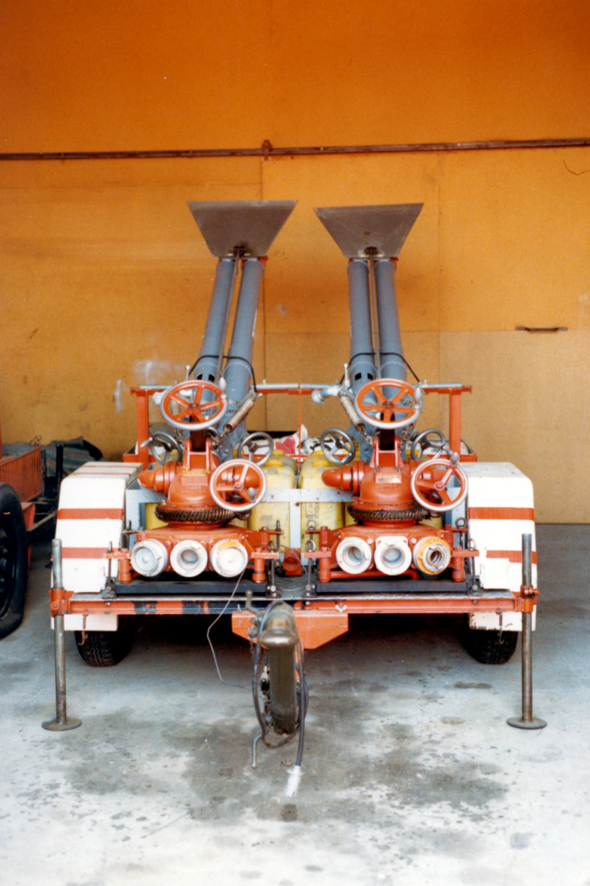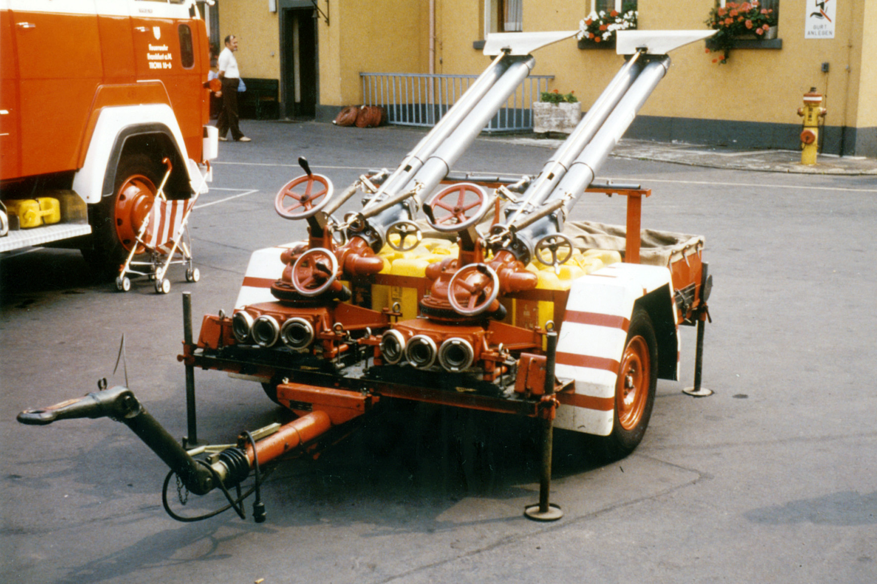Vielleicht ist ja auch ein Foto mit dem Feststoff- Zumischgerät auf der Deichsel dabei. Auch von Interesse wäre, was verbarg sich unter der Plane des heckseitigen Staukasten? Ich vermute es waren Schaummittelkanister.