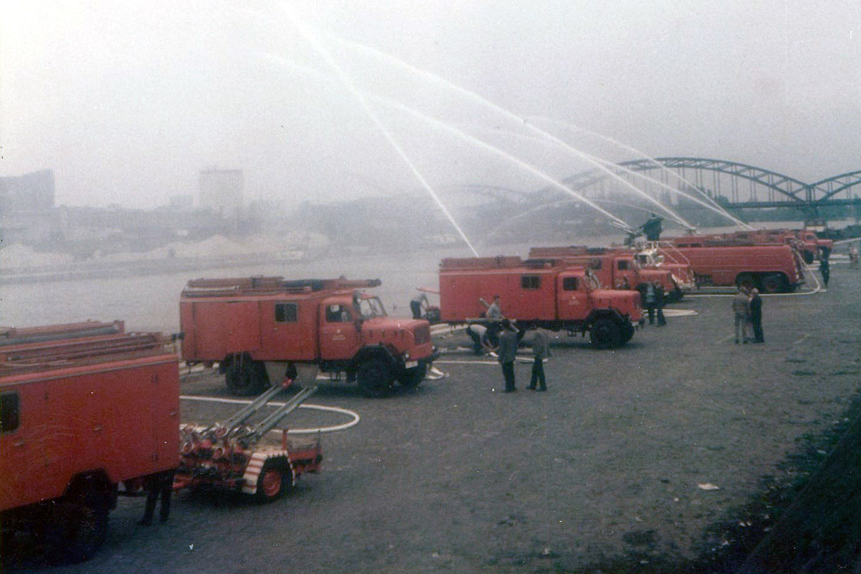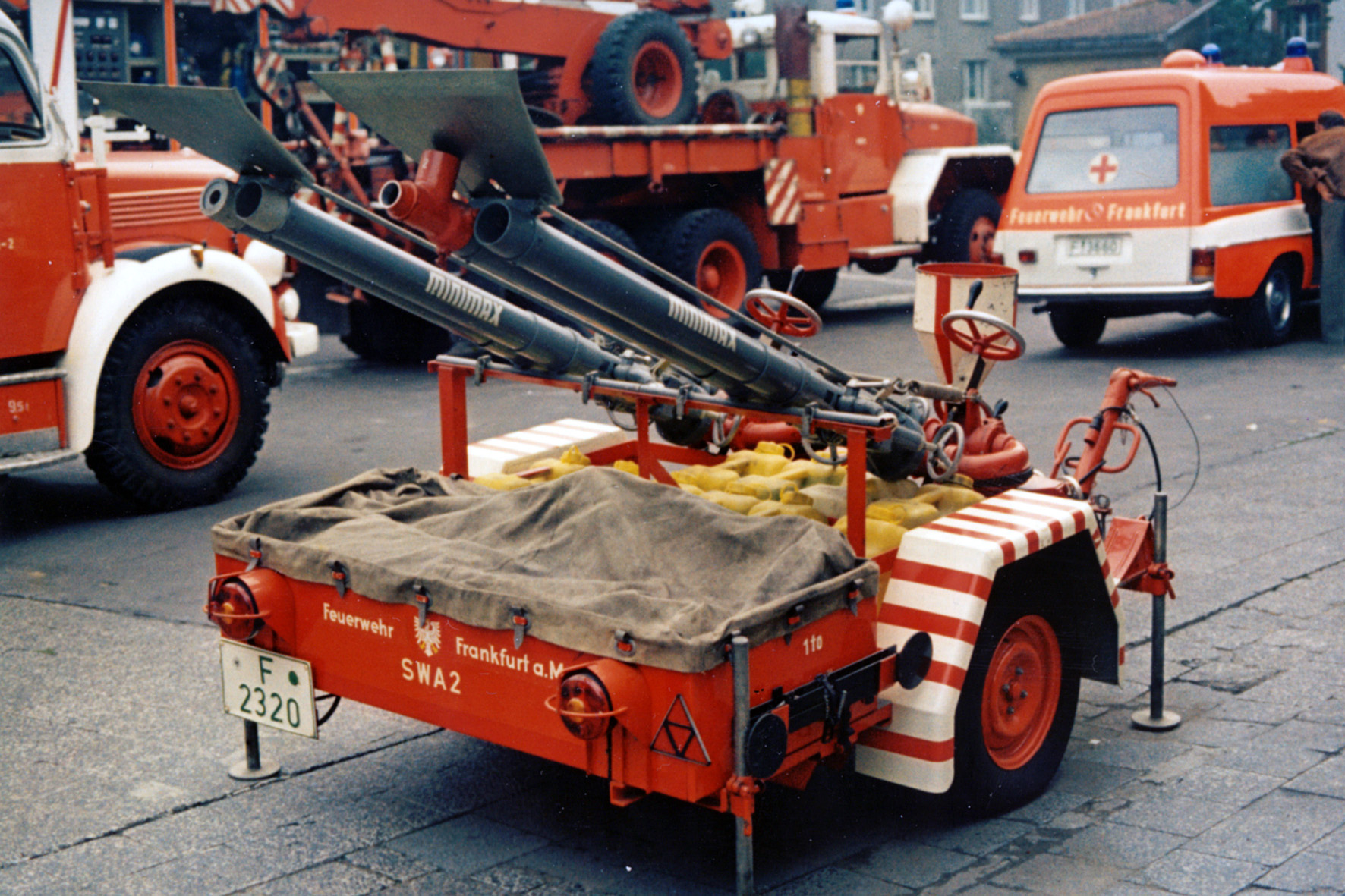 Im Mai 1969 wurden die neuen SWA am Sachsenhäuser Mainufer in Sachen Wurfweite und Durchflussmenge ausgiebig getestet. U.a. mit sechs LF 16-TS, zwei GTLF 6, dem GTLF 12 und eben den sechs SWA - und selbstverständlich in Anwesenheit des Amtsleiters: