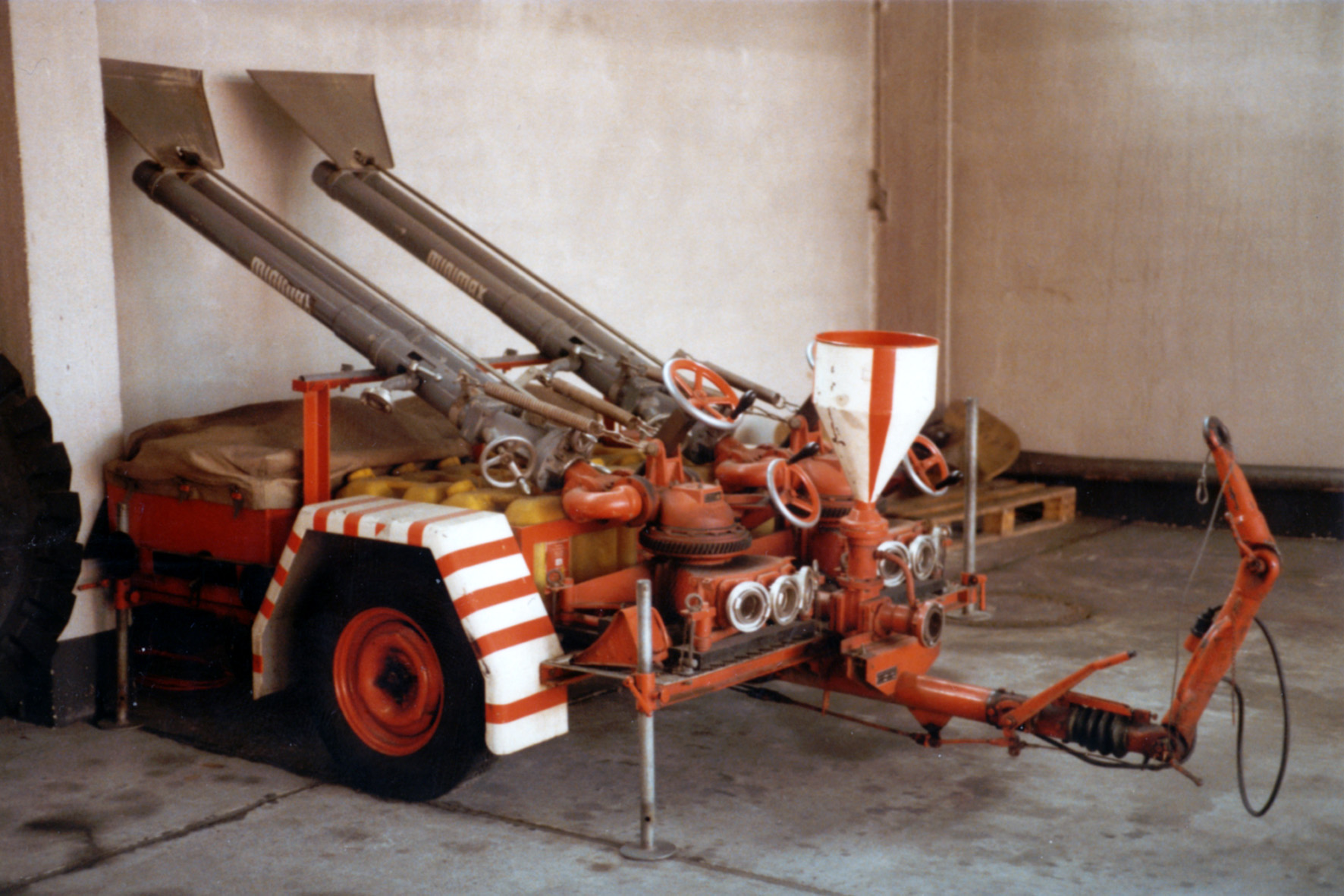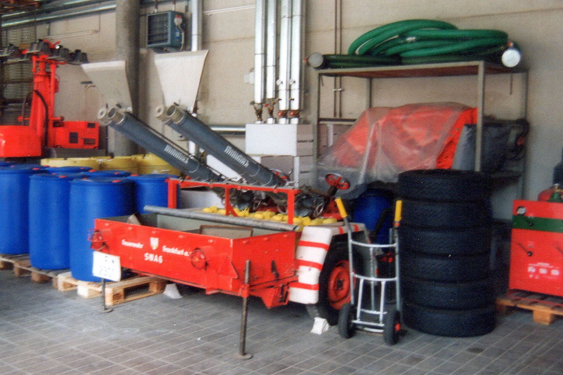Der Trichter diente mit dem angekuppelten Zumischer sowohl dem vereinfachten Nachfüllen von Schaummittel als auch dem Ausbringen von z.B. Ekoperl über größere Entfernungen auf Wasserflächen. Das hat sich aber nicht bewährt, da der Verbrauch an Ölbindemittel in keinem Verhältnis zum erzielten Nutzen lag.