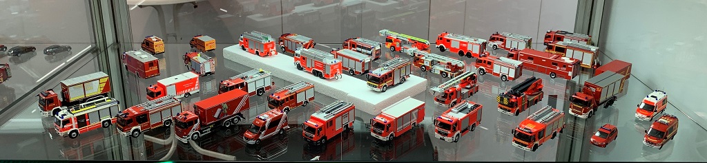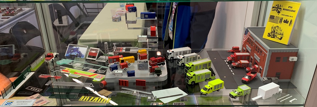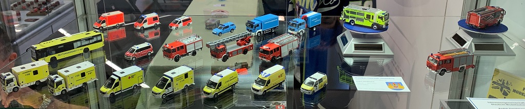Eine Erfahrung am Rande erwähnt. Der KTW von Busch war am Stand ausgestellt und auch im Regal in verschiedenen Ausführungen erhältlich. Lediglich der Pedant in leuchtrot/weiß stand einmal offen und verpackt in der Vitrine. Auf meine Frage, ob man mir das verpackte Modelle (15:45 Uhr) verkaufen würde, entgegnete der nette Herr re. am Stand, das dies nur Ausstellungsstücke und noch keine Serienmodelle seien. Diesen gäbe es derzeit noch nicht auf dem Markt. Nanu, dachte ich still bei mir, habe ich in der letzten Woche vor meinem Messebesuch im großen Kaufhaus eine Fata Morgana in mehrfacher Ausfertigung gesehen.