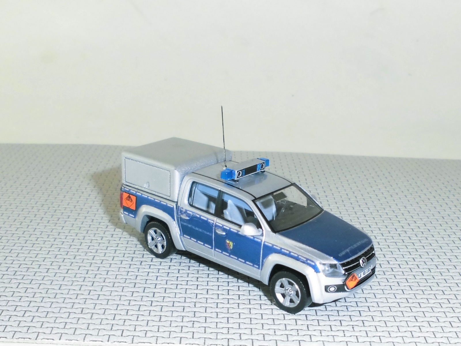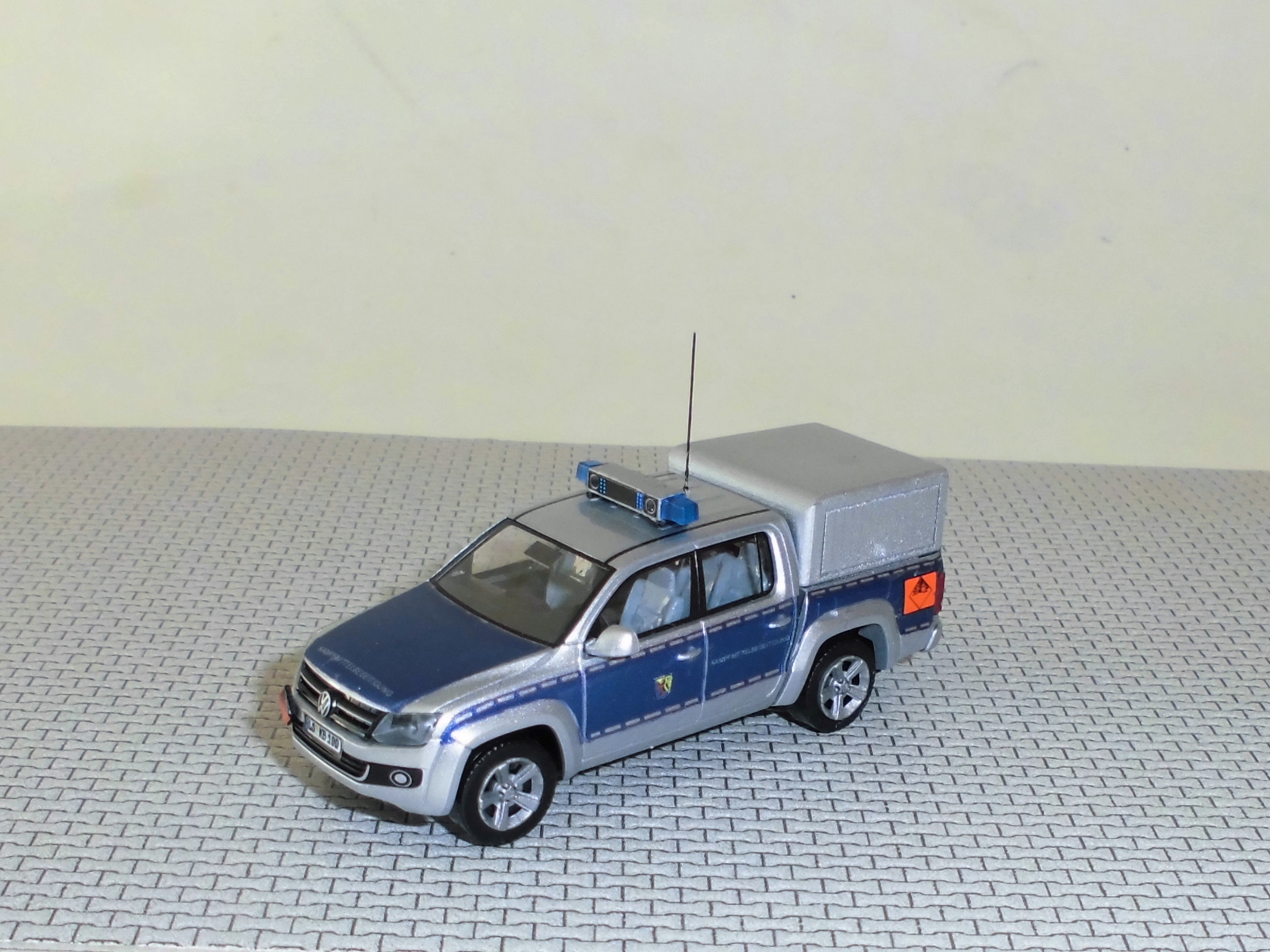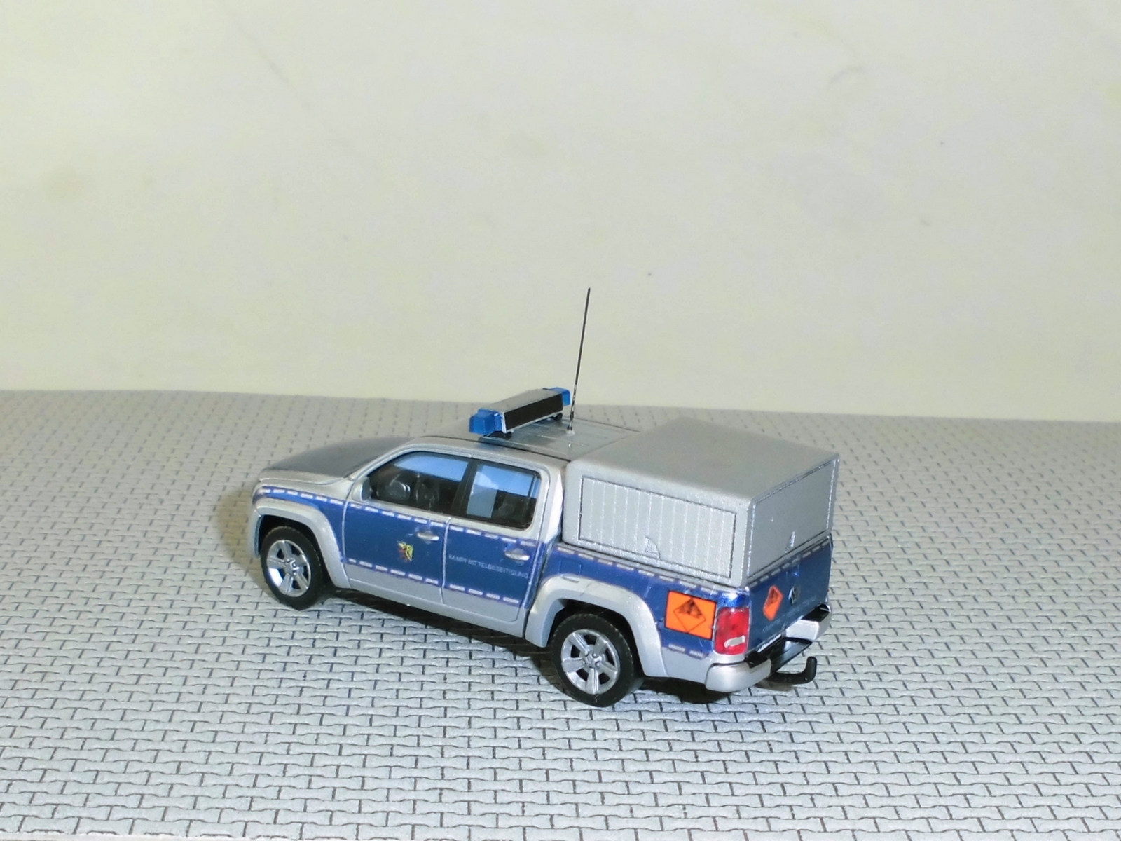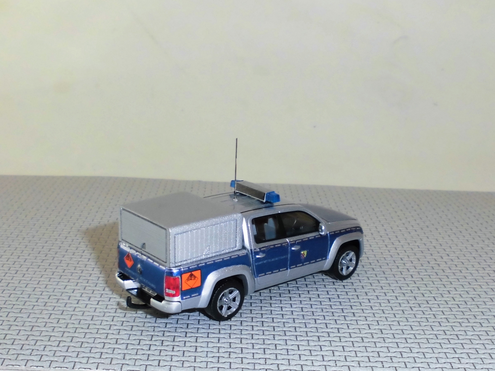 Das Grundmodell stammt natürlich von Wiking (Art.Nr. 0311 01 39). Ergänzt wurden der Aufbau (Rob's Model Workshop / Shapeways), der Blaulichtbalken (M.B.S.K.), eine Anhängerkupplung (Wiking) und die Antenne. Ach ja, und natürlich die Decals. Die großen Markierungen waren von einem unbekannten Hersteller, ich habe sie einst auf Ebay ersteigert. Die waren allerdings nicht wirklich gut zu verarbeiten. Die ganzen Detaildecals sind dann von den üblichen Verdächtigen zugeliefert worden.