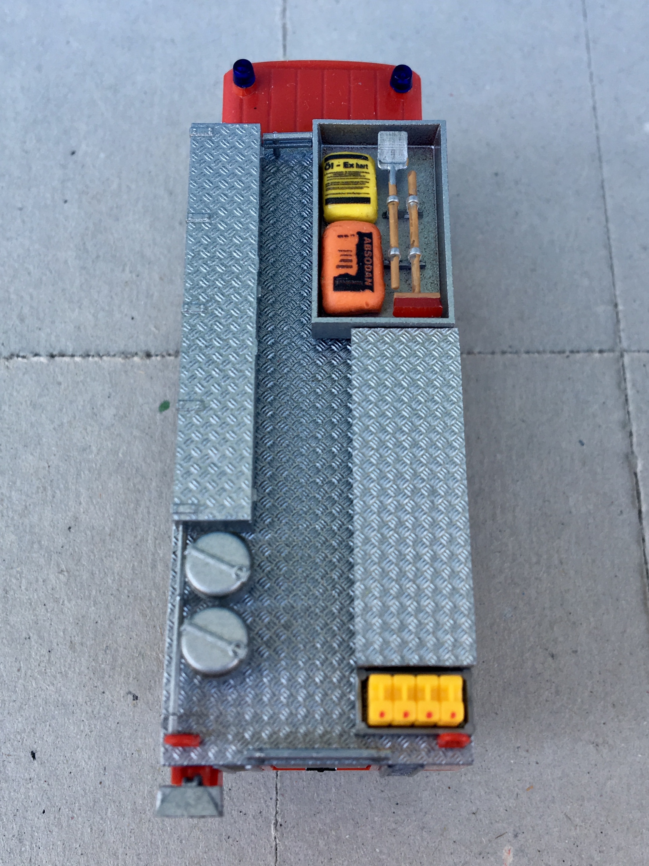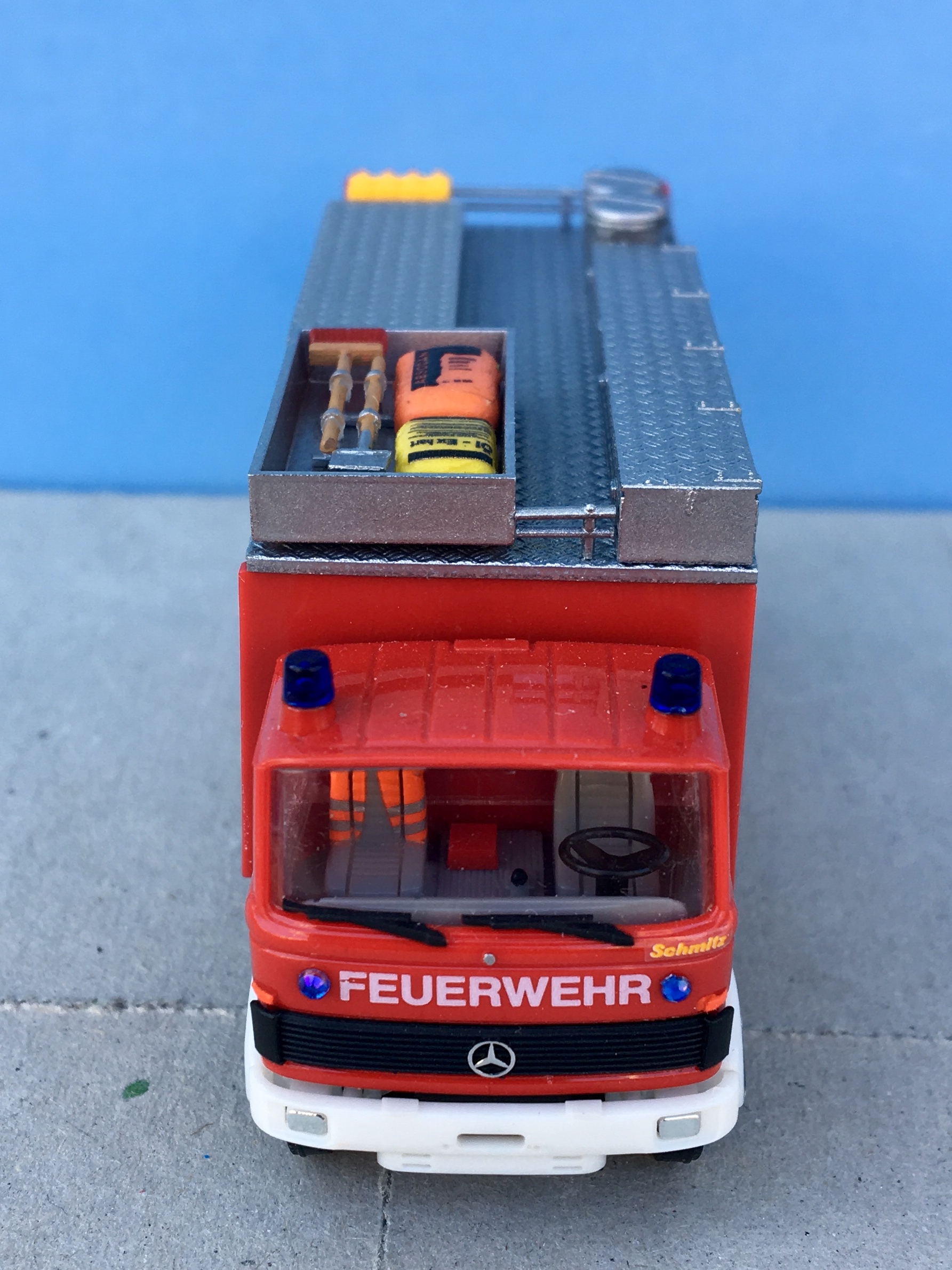 Die "Story hinter der Story" ist schnell erzählt: Ich habe über die Feiertage meine drei allerersten Feuerwehr-Umbauten aus etwa Anfang/Mitte der 1990er Jahre (buchstäblich) ausgegraben und einem Ultraschallbad unterzogen. Über meine eigene Kreativität im Konfirmationsalter habe ich gleichermaßen gestaunt wie gelächelt - was die großen roten (SWW-Schaumtanks) oder die kleinen roten (Schlauchbrücken) "Bohlen" sein sollten, hatte sich mir damals erkennbar noch nicht erschlossen... :wink: