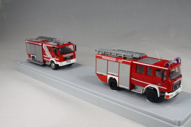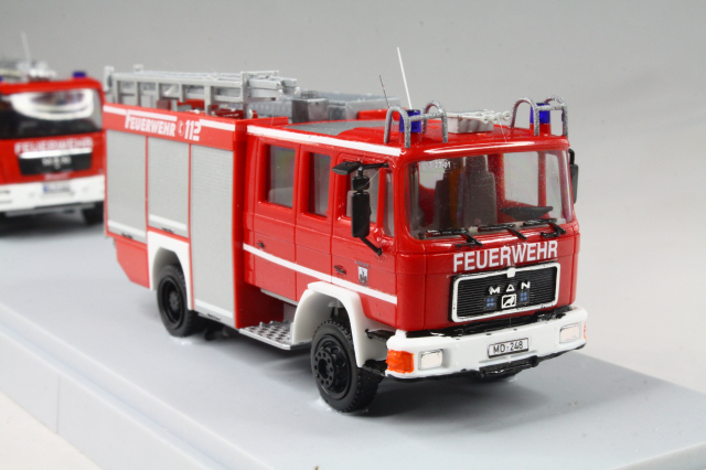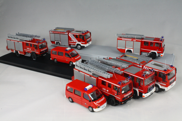 Soweit also zu meinem etwas größerem Projekt. Perspektivisch soll die Fuhrparkerneuerung weiter gehen und sowohl für MTW, wie auch LF 16 neuere Fahrzeuge kommen. Rietze hatte dankenswerter Weise das HLF damals auch rausgebracht, ein Modell davon steht schon länger in meiner Vitrine, ein zweites habe ich im Internet noch finden können. Das wird dann 2021 ein Projekt werden. Beim MTW muss ich dann mal gucken. Wo bekommt man VW Crafter mit kurzem Randstand her? *grübel*