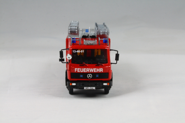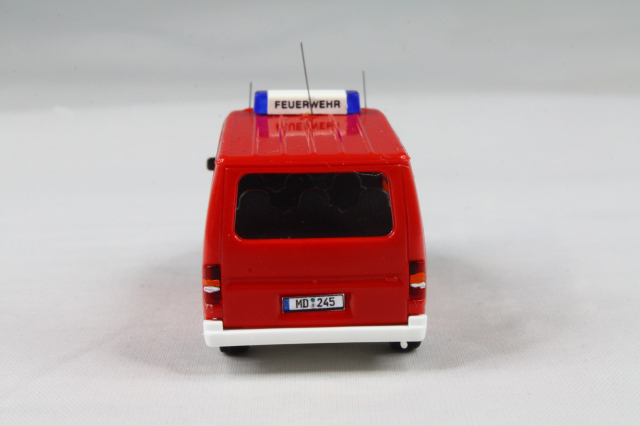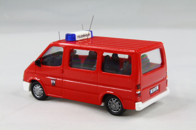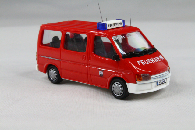 Modell von Rietze (BF Bonn), Aufdrucke entluxt, Kühlergrill lackiert. Ein Modell mit passendem, ovalen Kühlegrill habe ich nicht gefunden, darum fand ich das als akzeptablen Mittelweg. Blaulichtbalken wurden gegen bessere ersetzt und einer noch mit Decal beschriftet. Dazu die Funkkennung, Türbeschriftungen, Schriftzug auf der Motorhaube.