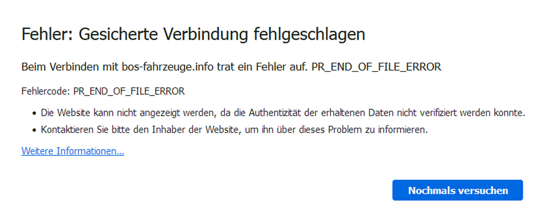 Kann es sein, dass die Seiten von BOS-Fahrzeuge.info momentan nicht erreichbar sind?