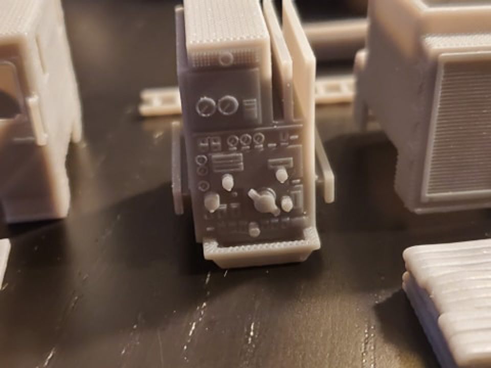 Genau hier sehe ich allerdings auch ganz ehrlich ein Problem, das sich schon zu Beginn der 3D-Drucke abzeichnete: Die Modelle werden aus zu wenig Einzelteilen hergestellt, viele Sachen wie Griffe und Schlauchkupplungen und was auch immer sind schon dran. Ich habe keine Ahnung, wie man sowas noch richtig gut lackieren und bemalen kann, es gibt dabei Hohlräume und Hinterschneidungen, an die man gar nicht mehr ran kommt! Ich habe mir u.a. einen Hochdrucklüfter zugelegt, der hinter dem (zu dick und zu dicht) gedruckten Gitter das Lüfterrad hat!?! Also kommt das Gitter weg, es soll ohnehin gegen ein geätztes ausgetauscht werden. Das aber bedeutet, dass ich Teile des gekauften Modells entfernen und gegebenenfalls neu anfertigen muss, das wird auch bei solchen Modellen wie hier notwendig werden, wenn ich z.B. die Armaturenwände per Bare-Metal-Foil bekleben will. Ist also nicht nur unnötige Mehrarbeit sondern schlicht auch Geldverschwendung (ja gut, das gibt es z.T. auch bei Abguss- und normalen Spritzgussmodellen, hier aber noch deutlich mehr). Da würde ich mir von den Herstellern etwas mehr Einsicht erhoffen, auch wenn das vielleicht ein paar Euro oder Dollar mehr kosten würde.