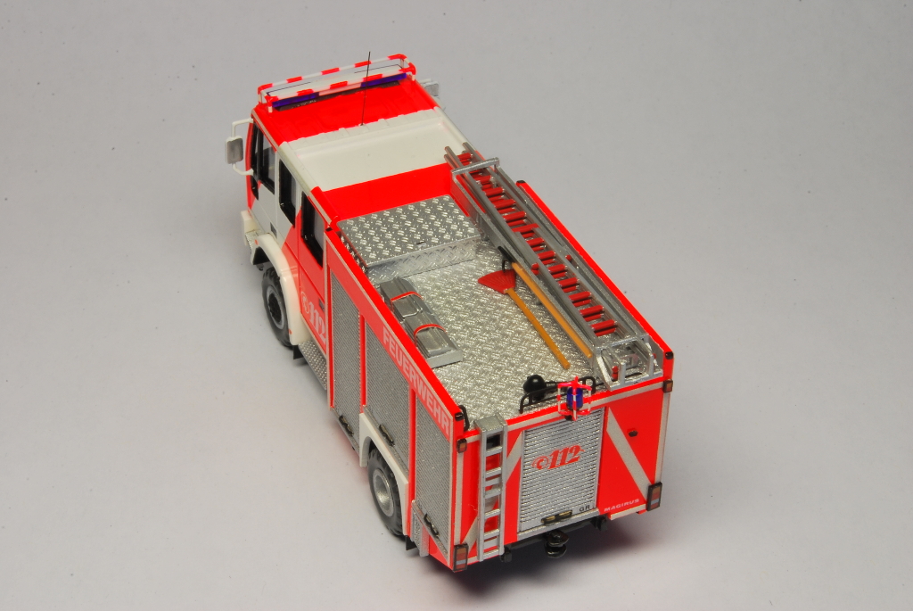 Grundlage für dieses Modell bildete ein EuroFire LF 16/12 von Wiking und ein Frästeilesatz von Dominik Heimann (DH Modellbau). Die Räder des LF 8/6 sind eine Teilekombination aus Wiking Reifen und Preiser Felgen. Ansonsten komplettieren viele zusätzliche Teile aus dem Bastelvorrat den Magirus.