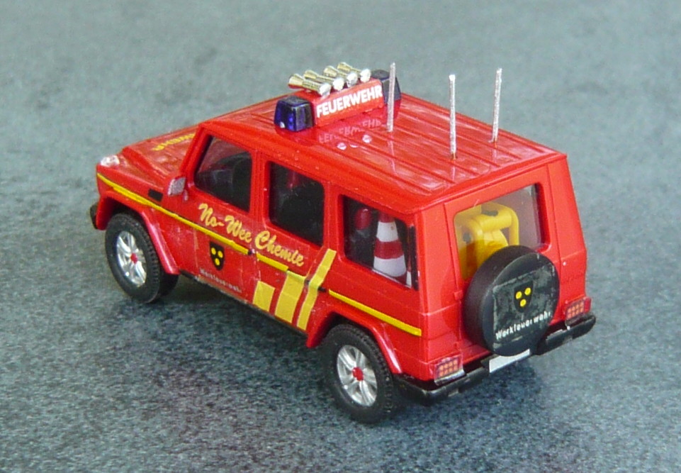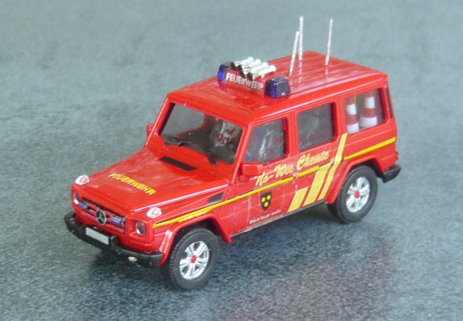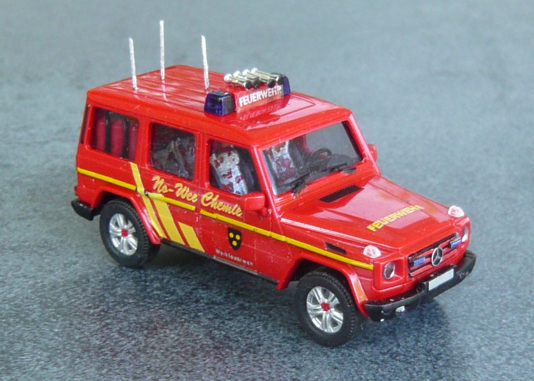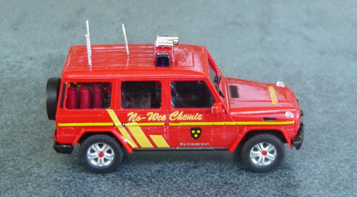 dem Einsatzleiter B-Dienst der WF No-Wee Chemie steht als ELW 1 ein Mercedes G zur Verfügung. Die interne Bezeichnung lautet "ELW B1".