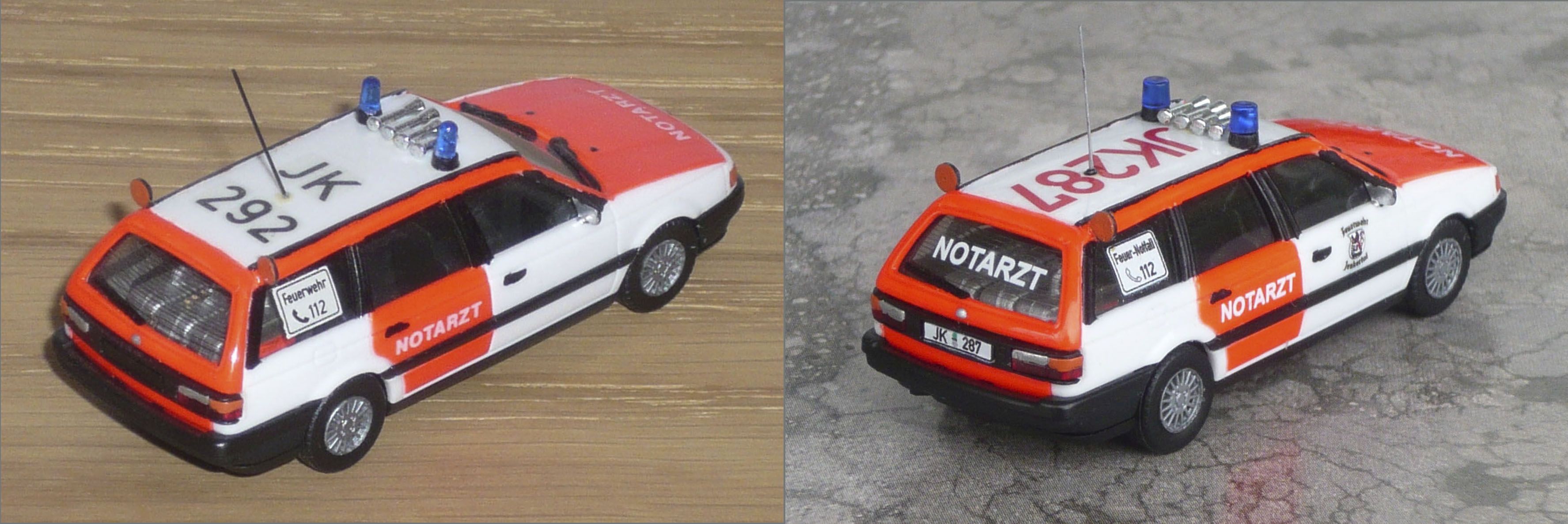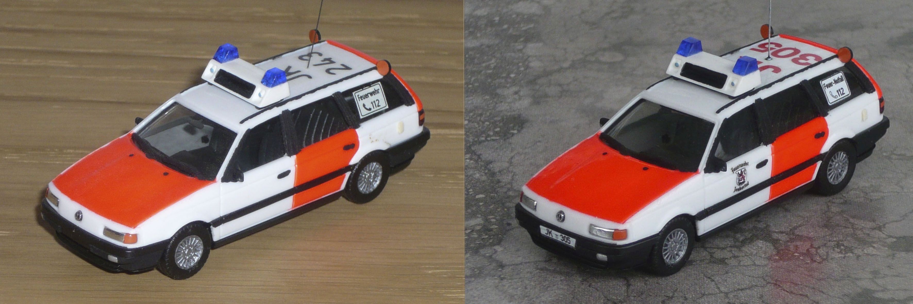 Die beiden anderen werden den neuen Gegebenheiten angepasst und im Anschluß auch wieder in einer Gegenüberstellung präsentiert. Es handelt sich dabei um VW Passat Limousinen: