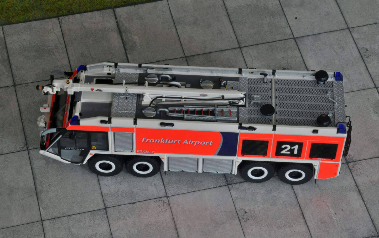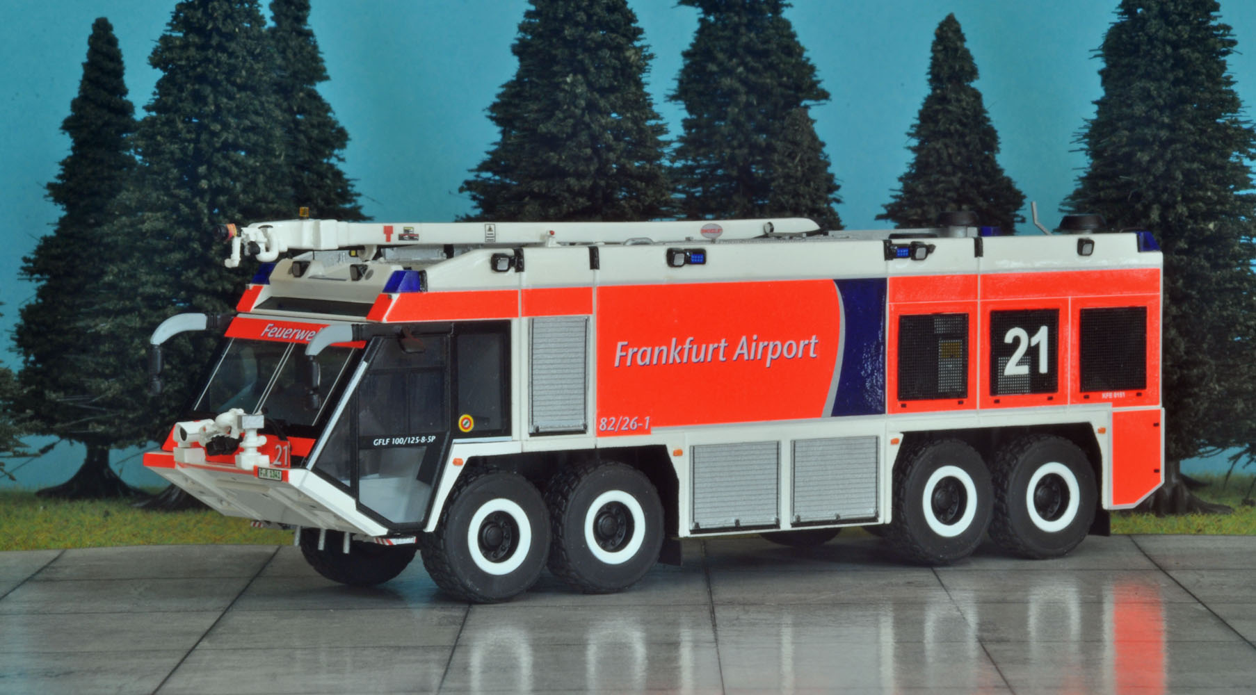 Das Modell basiert wie Herpa auf dem Cursor-Modell, allerdings mit vielen ergänzenden und besseren Teilen. Ziemlich genial sind die vielen Ätzteile, die von mir seitlich mit Decals hinterklebt wurden. Beim Original scheinen auch einige Teile des Motorraums durch. Die Kotflügel unter der Kabine wurden von mir mit Profilen korrigiert, hier fehlte beim Cursor etwas. Auch die Auftritte unter den Türen wurden durch neue ersetzt, die beigefügten Ätzteile waren mir hier einfach zu flach. Sonst habe ich nur eien Reihe Kleinteile ergänzt. Sogar die Werfer, an denen ich sonst eigentlich immer etwas auszusetzen habe, konnten einfach nur versäubert verwendet werden.
