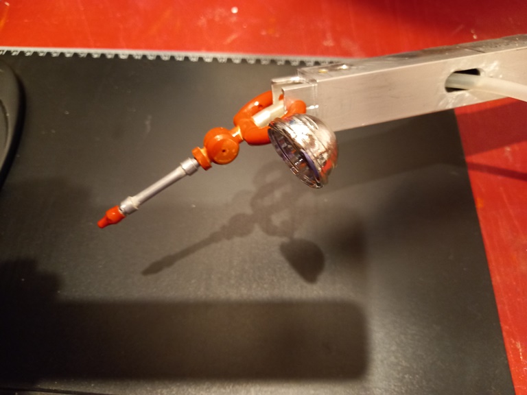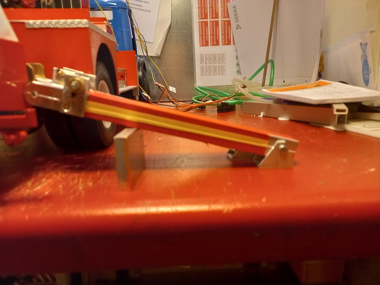 Derzeit arbeite ich an der Detailierung des Gelenkarms. Hierzu wurden die Attrappen für die Steigleitung sowie deren Halter gefertigt. Attrappen deswegen, weil innerhalb der Rohre ein weiterer Schlauch verläuft, der die eigentliche Wasserleitung bildet.