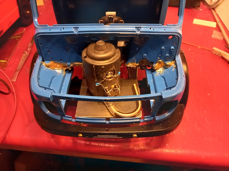 Wolfgang Brang hat geschrieben:Blaulichter Aus Aluminium wurden erst einmal 2 Sockel gedreht und ins Dach eingeklebt. Für die eigentlichen Blaulichtkappen habe ich Reagenzgläser aus Glas verwendet, deren Boden mit einer diamantbestückten Trennscheibe abgeschnitten wurden. Zum Glück war der Ausschuss nicht zu hoch, 2 von 3 Reagenzgläsern haben überlebt.