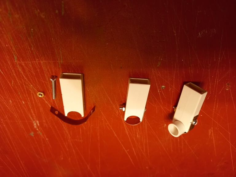 Halter hier als Einzelteil/ zusammengebaut und mit einem Rohrleitungsstück