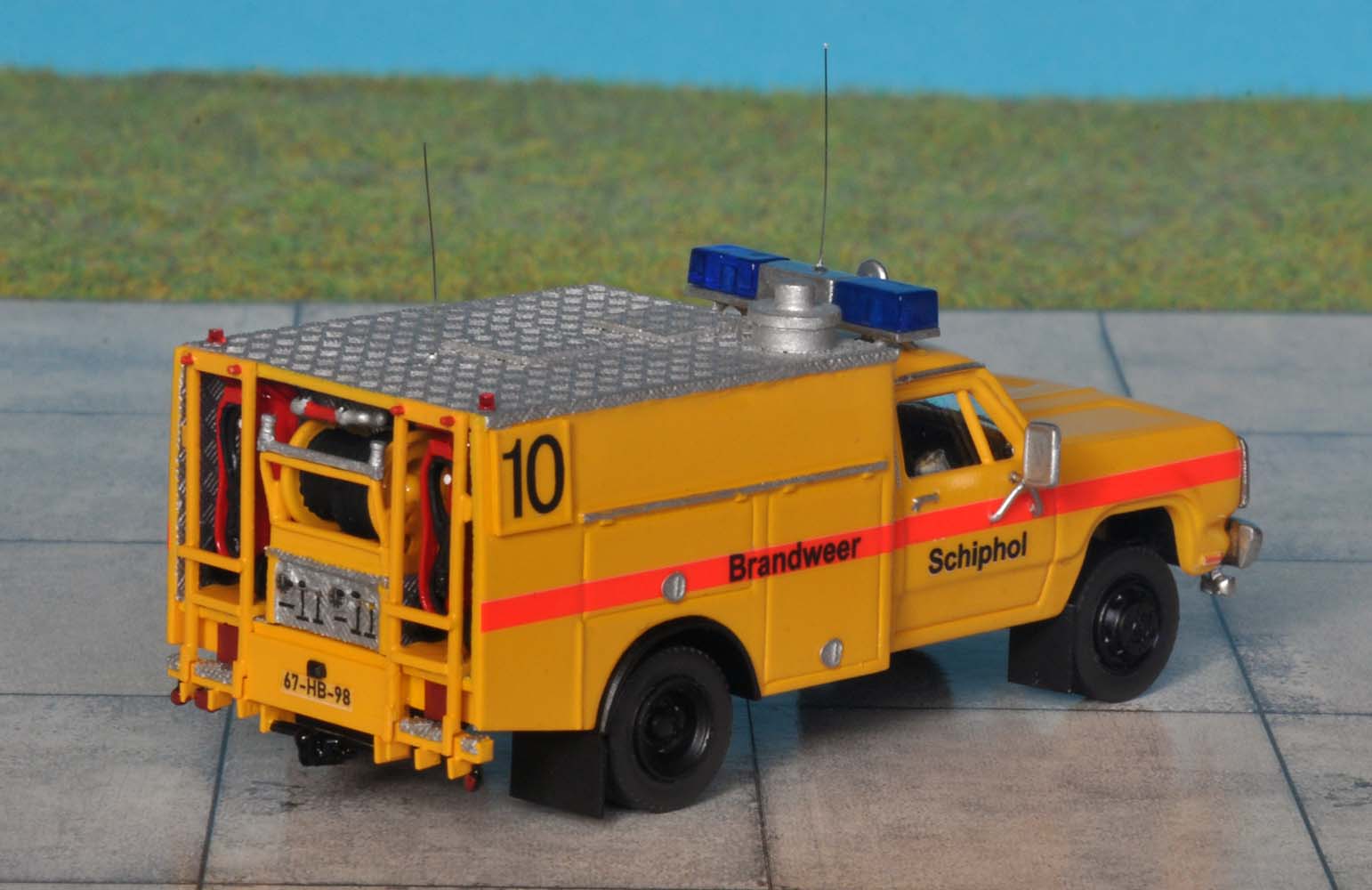 Auf Schiphol standen insgesamt 4 dieser Snelle Interventievoertuigen in Dienst. Allerdings nur relativ kurz bevor sie durch größere Fahrzeuge ersetzt wurden. Ende der achtziger hatte ich schon mal ein ähnliches Fahrzeug vom Flughafen Maastricht gebaut, allerdings bei weiten nicht in der heute von mir gewünschten Qualität.