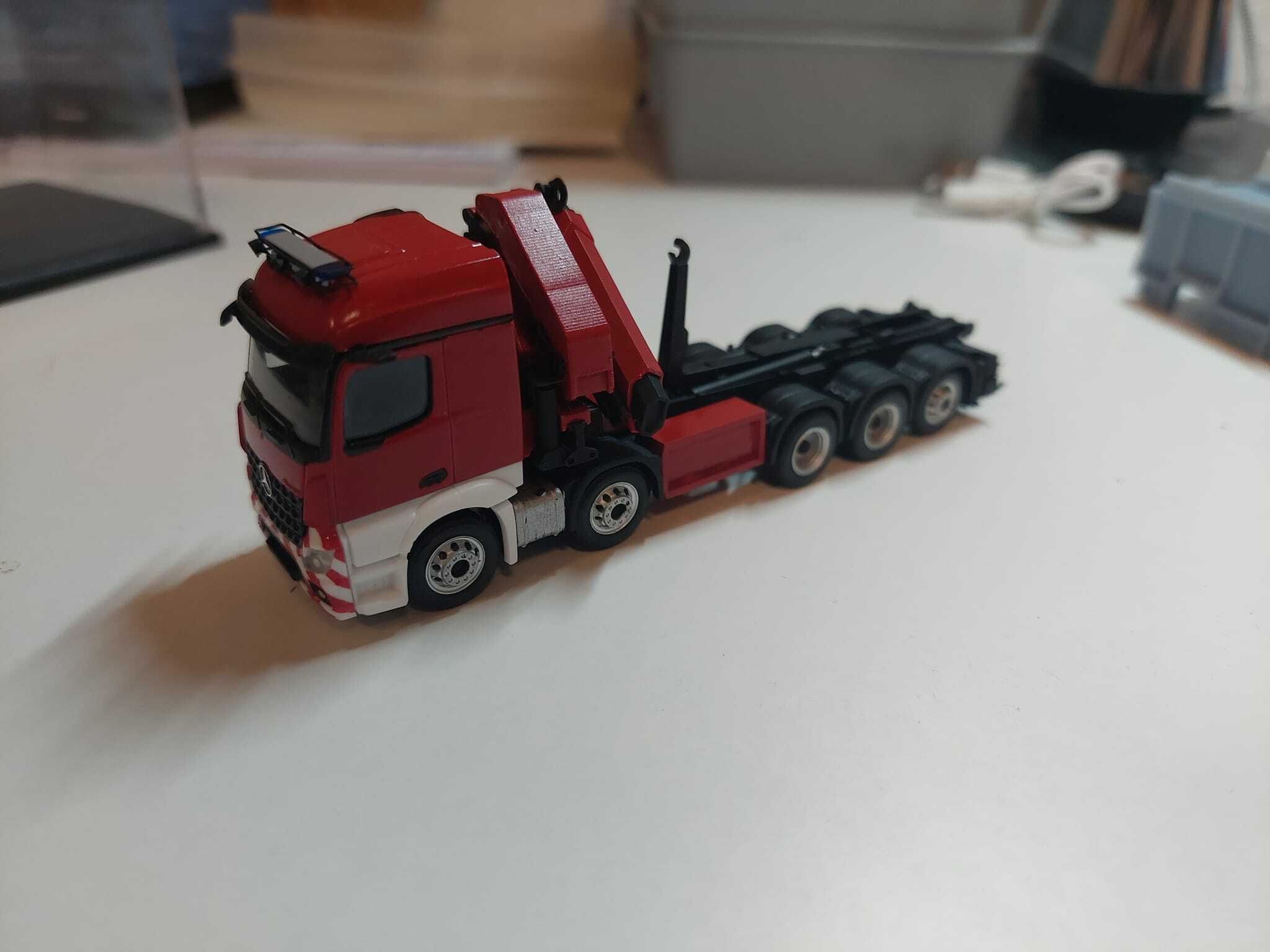 Kabine von B&K Modellbau, Aufbau und Kehraufsatz von MMH (Aufbau wurde nach unten hin verlängert und der Radkasten ausgefeilt), Warnanlage ebenfalls von MMH, Decals und Bauteile aus der Bastelkiste.
