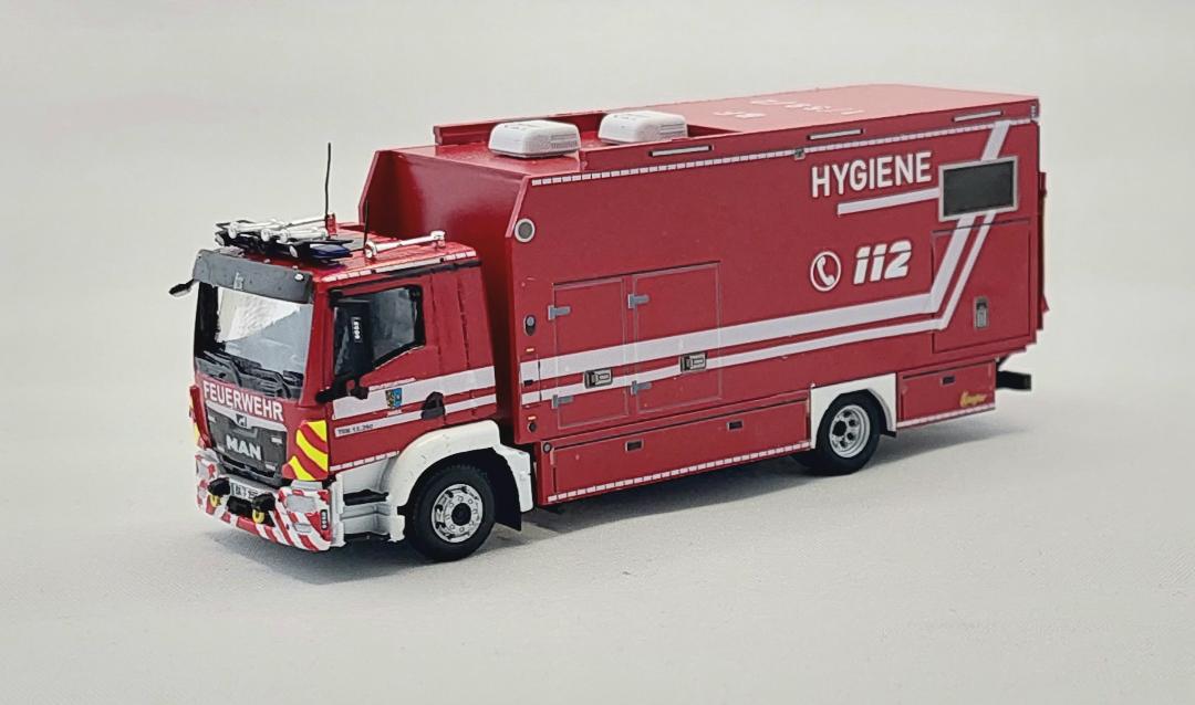 Grundmodell vom Duisburger ELW von B&K Modellbau (Umbau auf die dritte Ache), Tür und Fenster Decals von MBSK, Restliche Bauteile und Decals aus der Bastelkiste.