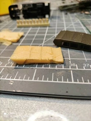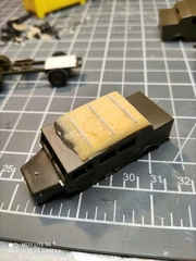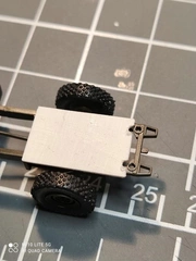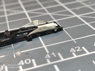 ...als Hilfe für die Höhe der Achsmitte, habe ich mir diese kleinen "Hilfsplättchen" aus Sheet geschnitten....netter Nebeneffekt ist eine Klebefläche für die Federn.....