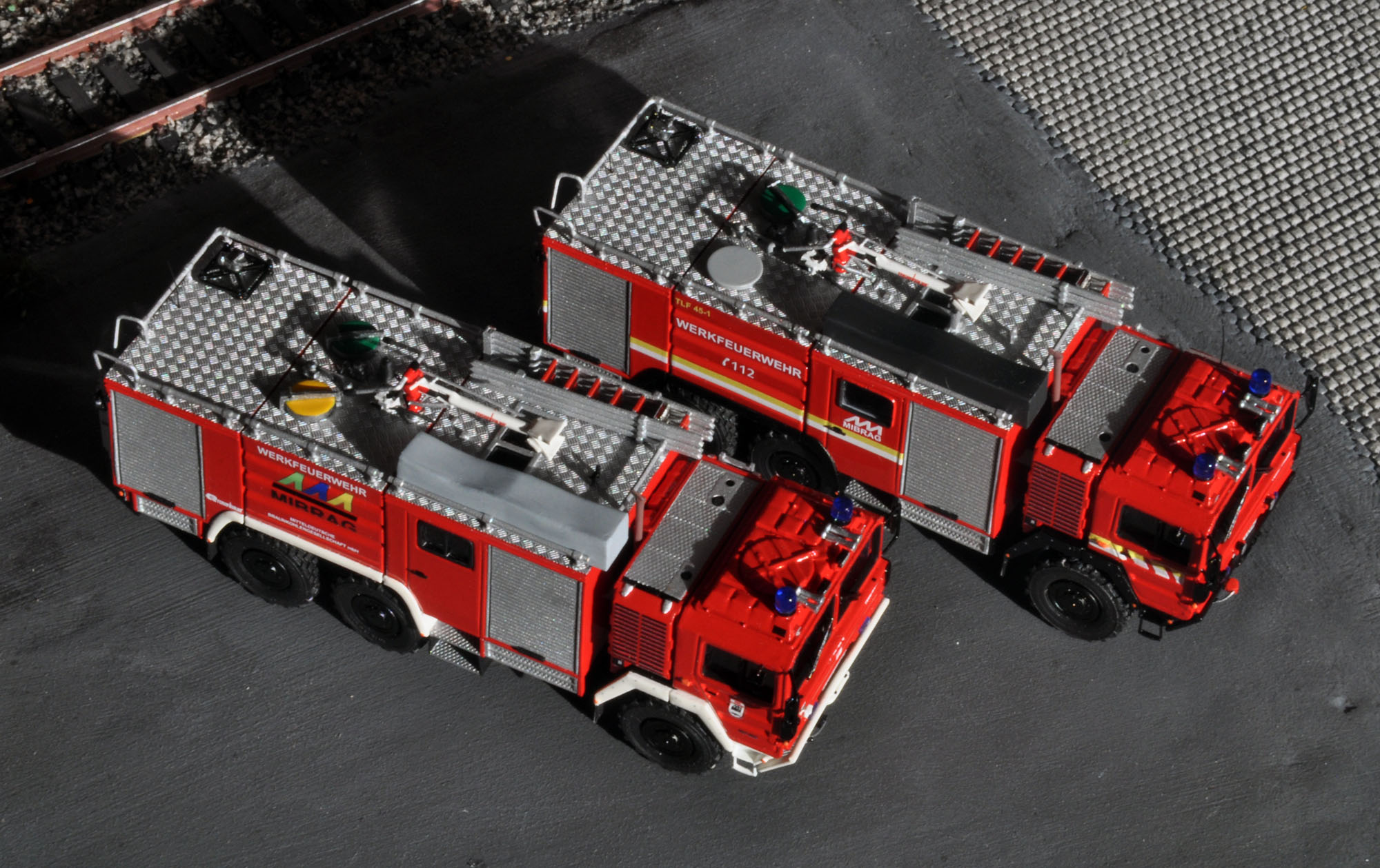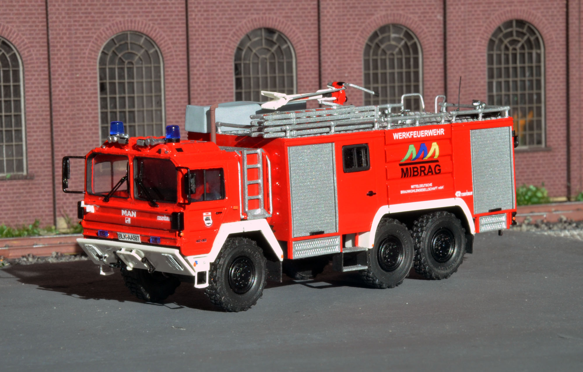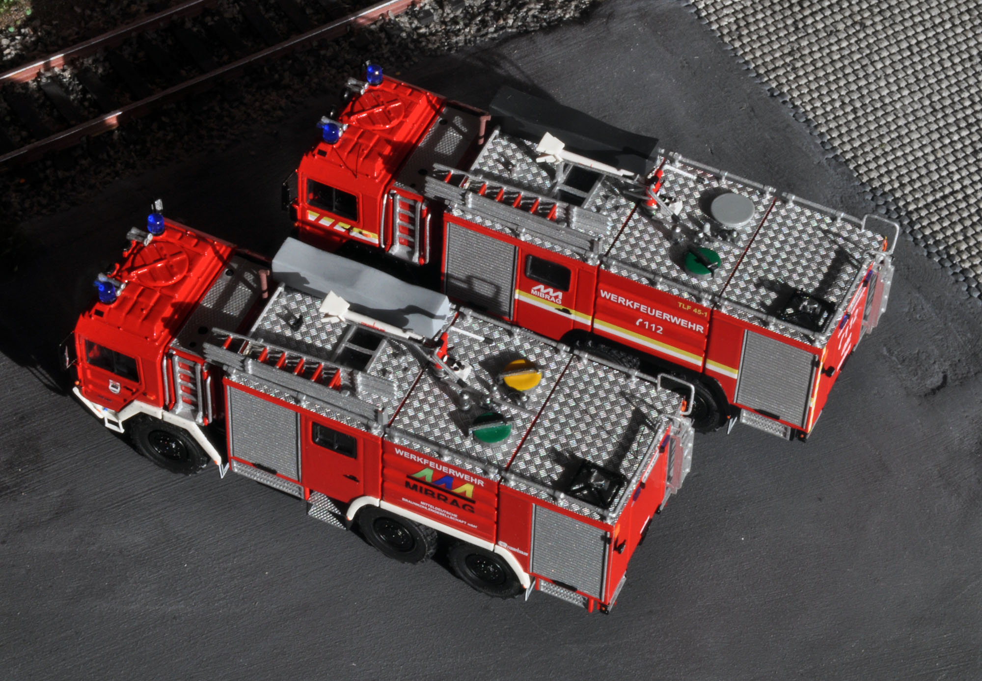 Abseits der wirklich gelungenen Modelle ein Satz zu den Originalen, bzw. vielmehr zum Original. Mittlerweile befindet sich bei der MIBRAG nur noch eines der TLF im Einsatz und zwar das im Vereinigten Schleenhain. Das Fahrzeug aus Profen ist zwar noch physisch anwesend, wurde aber aufgrund eines technischen Defekts außer Dienst gestellt.Dirk Wieczorek hat geschrieben:[...] habe ich das Fahrzeug aus Profen im Zustand nach der Überholung gebaut und das zweite aus Schleenhain im Originalzustand.[...]
