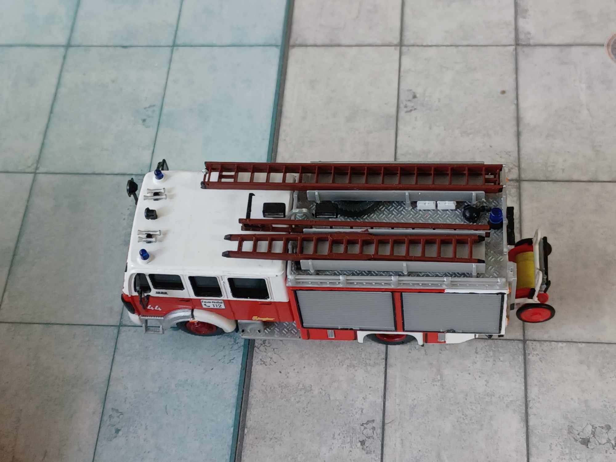 Das Modell entstand aus dem Preiser LF 16 mit dem Aufbauunterteil von Reinhard Merlau. Dazu Kleinteile und Decals.