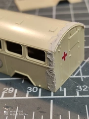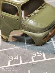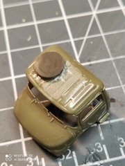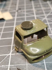 Am Fahrerhaus habe ich dann auch weiter gemacht und fehlende Details ergänzt sowie die Belüftungsklappe im Dach verspachtelt, Dachluke ergänzt, etc....