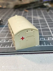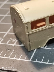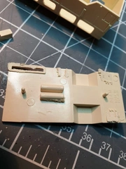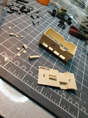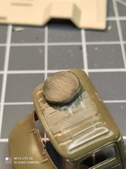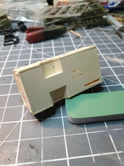 Am "EMMA-Koffer" wurden alle falschen (zumindest für den Gkrkw) bzw. nicht benötigten Details entfernt.......wobei ich leider feststellen musste das der Kunststoff extrem Porös ist und beim schneiden so stark bricht das regelrechte "Krater" entstehen, vermutlich war das Modell längere Zeit UV-Licht/Sonnenstrahlung ausgesetzt......das bedeutete zusätzliche Spachtel- und Schleifarbeit.....