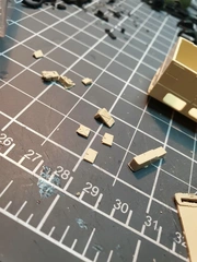 Das werden die Halter für Nummernschilder und hintere Katzenaugen, ebenso habe ich noch die vorderen Tarnleuchten ergänzt....