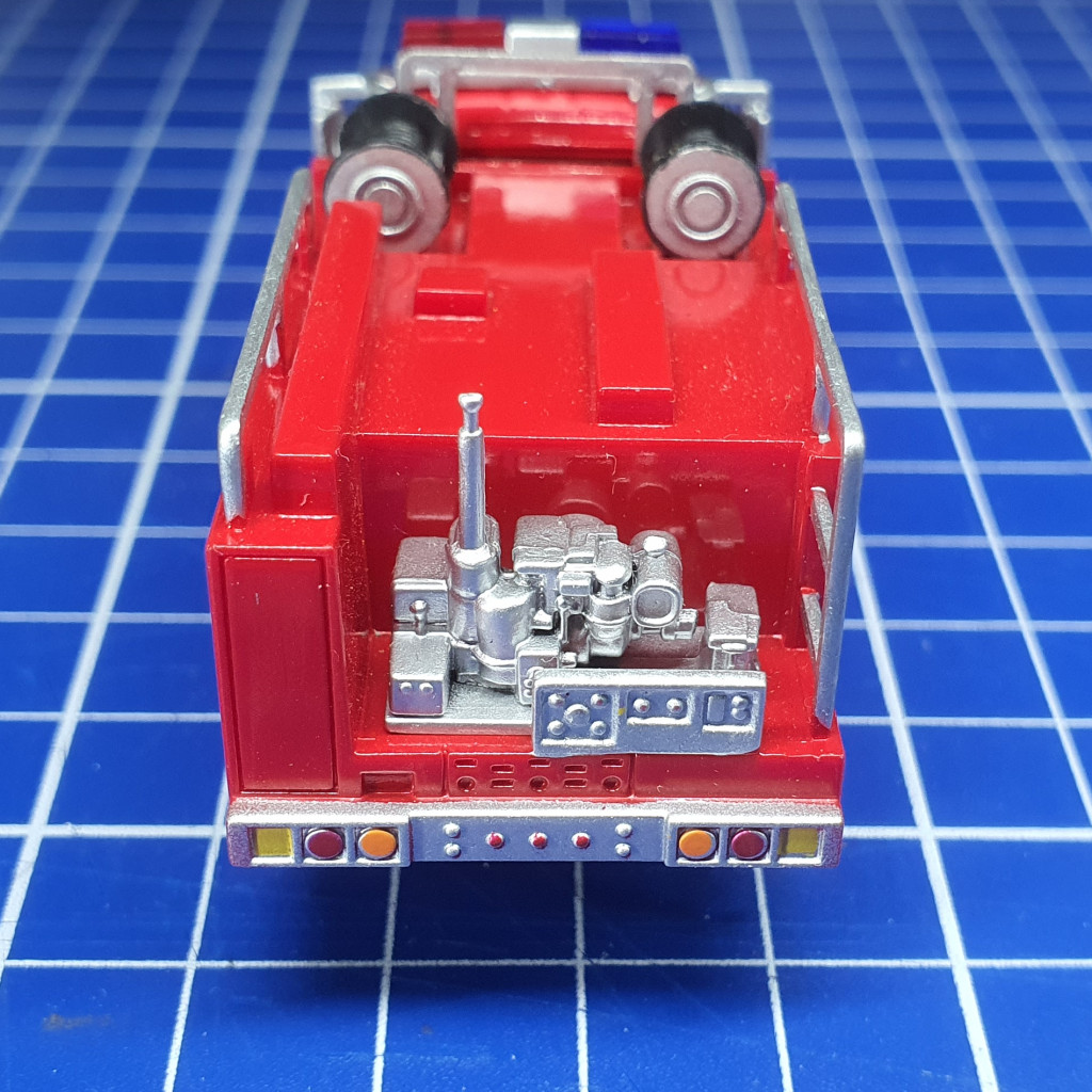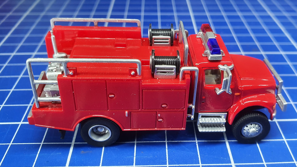 Dasselbe gilt für den Fire Rescue, bei dem nicht mal klar ist, was der genau darstellen soll. Er läuft mal unter "First Responder" (gewissermaßen ein "Vorausrüst-Löschwagen mit Sanitätsausrüstung"), mal wird er auch der Waldbrandbekämpfung zugeordnet... Jedenfalls der Überstand am Heck zeigt, dass das ein älteres Vorbild ist, heutzutage sind solche Standflächen eher out, wenn man sich die moderneren Fahrzeuge so anschaut.