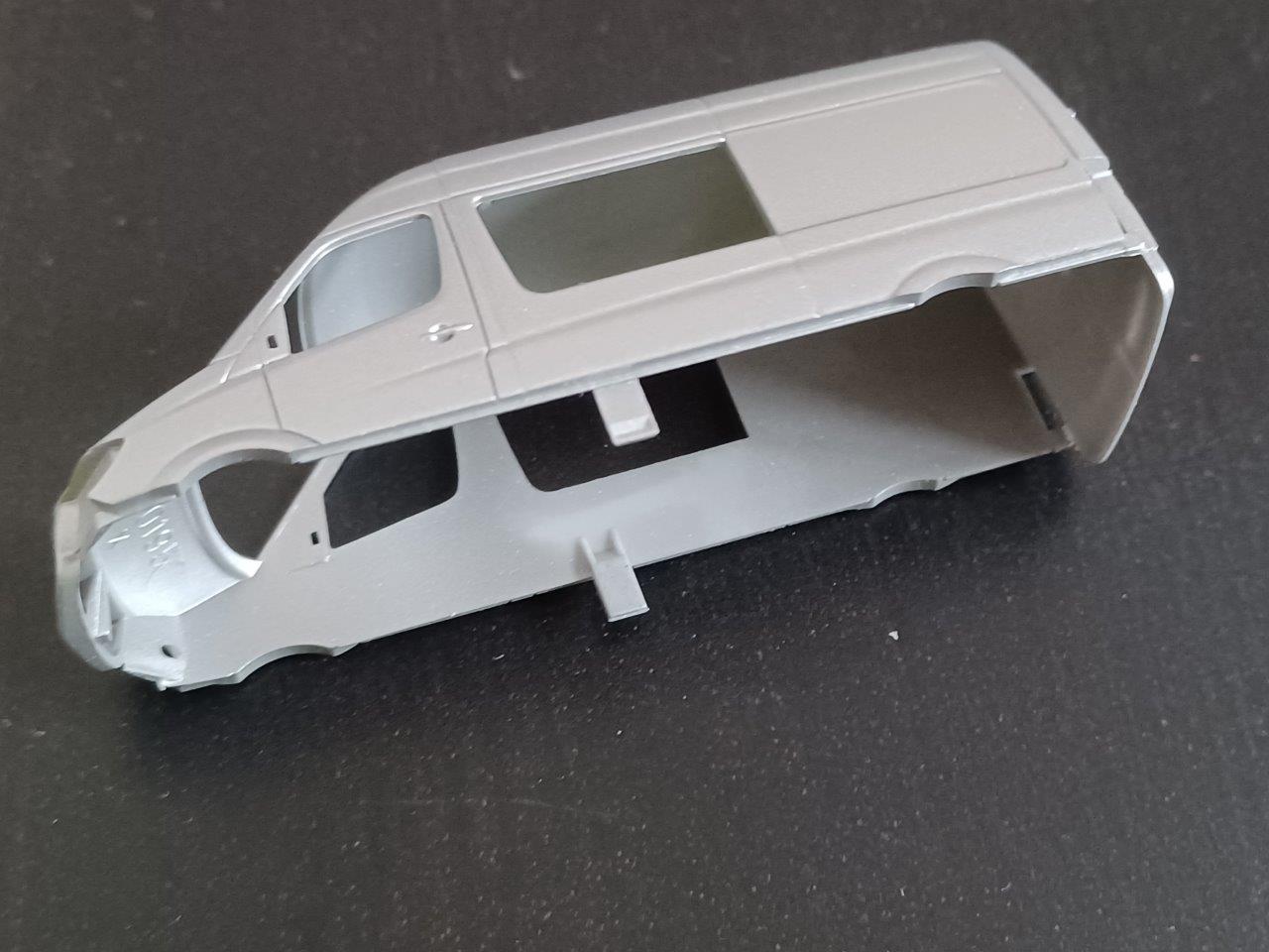 Nachdem ich mir ein Herpa Minikt 012959 (Mercedes-Benz Sprinter Halbbus) kann ich den ersten Teil der Frage beantworten. Auf den ersten Blick dachte ich, dass es sich um silber durchgefärbten Kunstoff handeln würde, aber bei näherem Hinsehen habe ich zwei hellgraue Stellen in der Karosserie gefunden, so dass ich daraus schließe, dass die Karosserie lackiert ist.