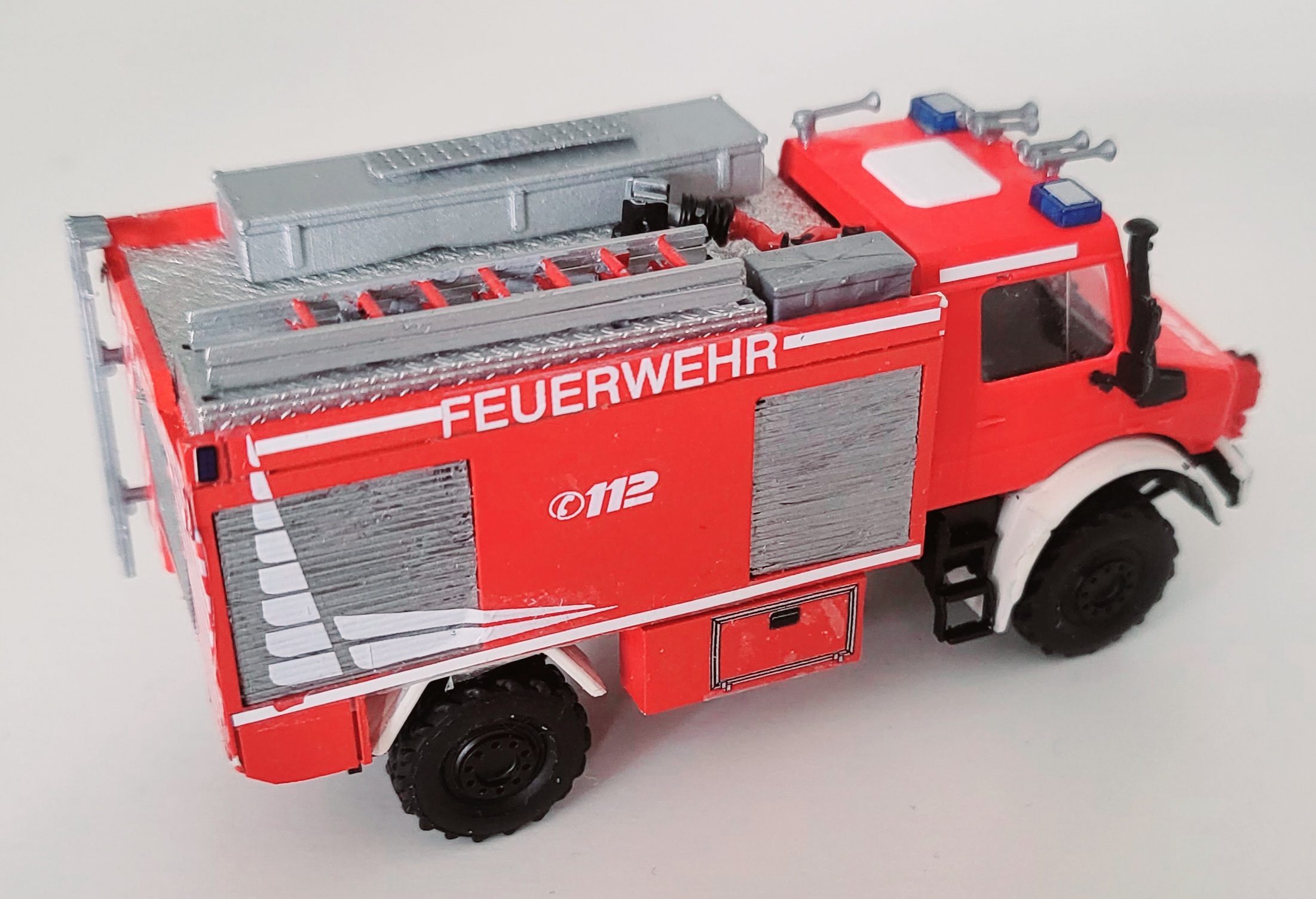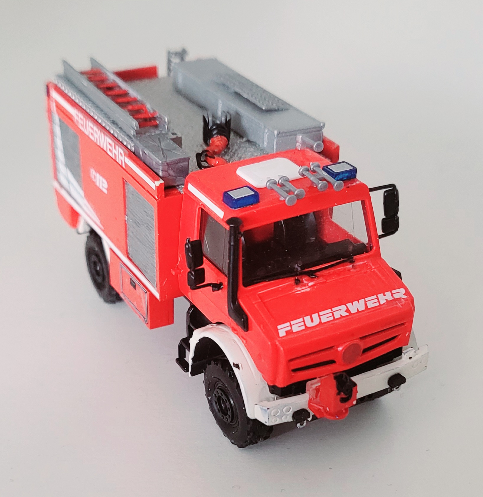 Den Anfang macht das TLF 3000 auf Unimog mit Ziegleraufbau der freiwilligen Feuerwehr Alexandersbrück-Oesterweg. Das Fahrzeug dient neben dem örtlichen Brandschutz auch der Wald- und Vegetationsbrandbekämpfung. Das Modell entstand aus dem Bausatz von Busch mit einem Aufbau von ScaleGraphix, es wurde in RAL 3000 lackiert und mit Decals von DS und MOrDec sowie vielen Kleinteilen aus den Bastelkisten versehen.