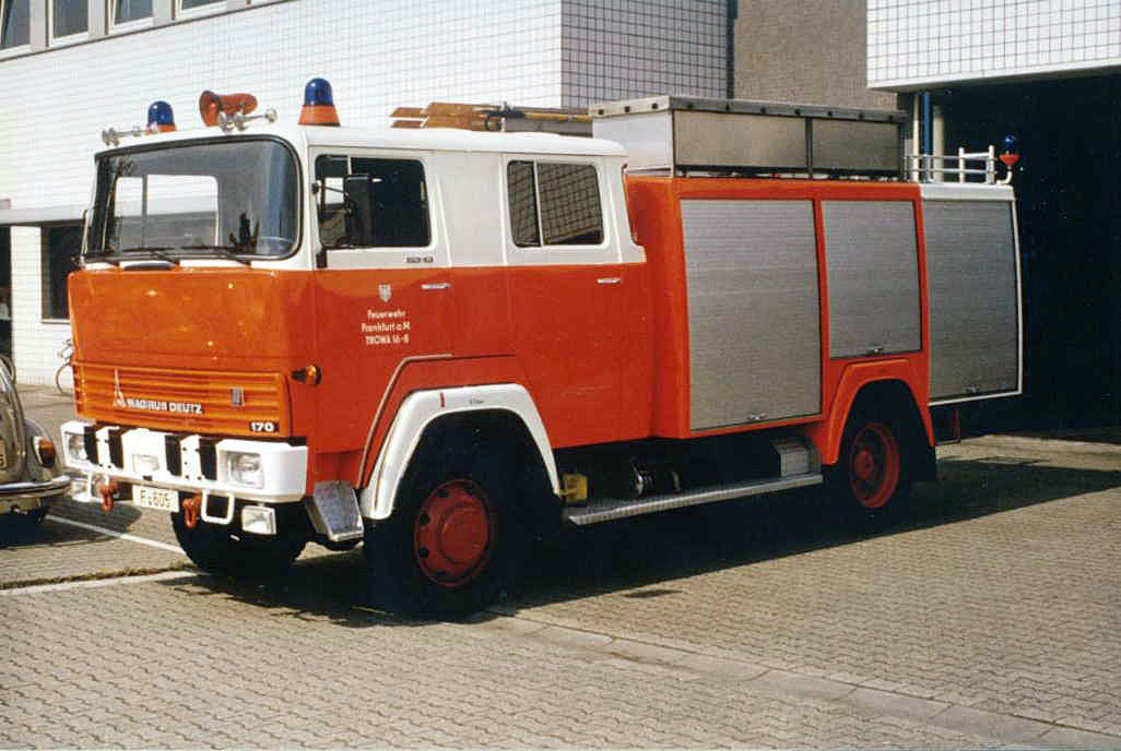 Was mir noch aufgefallen ist: Ursprünglich waren bei den Magirus D-Fahrzeugen (TROWA, HLF, LF) die hinteren Kotflügel in RAL 3024 lackiert. Diese wurden später wohl in RAL 9010 umlackiert, aber offensichtlich auch nicht bei allen Fahrzeugen. So wurde das LF 16 der FF Niederrad (F-643) mit leuchtroten hinteren Kotflügeln außer Dienst gestellt, während das LF der FF Oberrad (F-644) weiße hintere Kotflügel besaß, obwohl beide das gleiche Baujahr hatten. Bei den Frankfurtern ist es oft schwer, ein System zu erkennen. Da gibt es viele unterschiedliche Varianten.