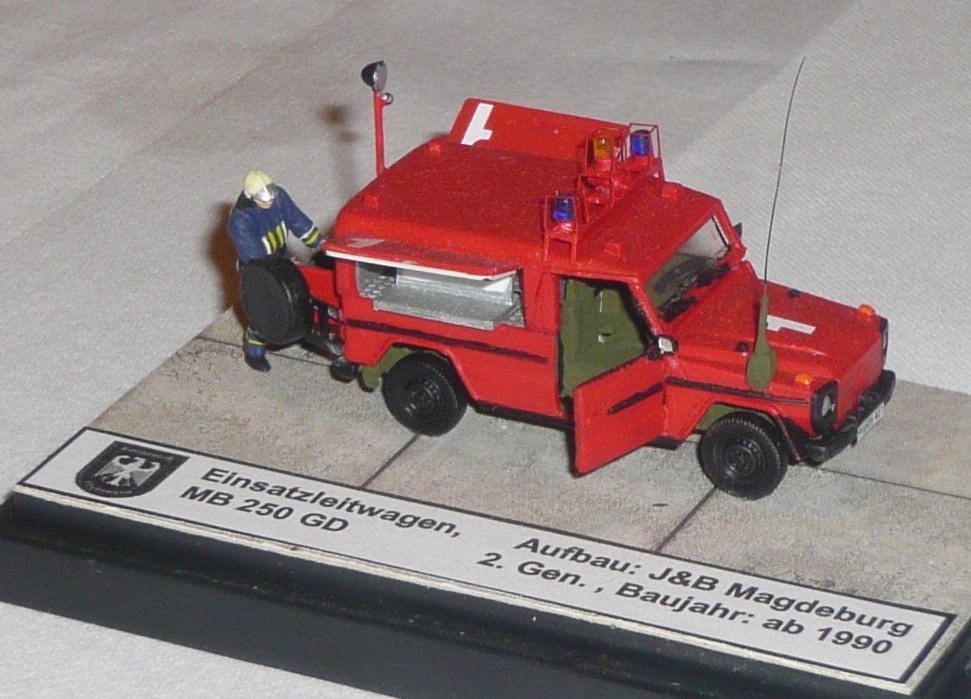 Bernhard Proempler brachte einen frischen MTW der Feuerwehr Dormagen von Rietze mit: Ich hatte zwei frisch geklebte Kisten von DH Modellbau dabei - den neuen RW1 Magirus AluFire und ein Unimog TLF Ziegler. Ein sehr kurzweiliges Klebevergnügen (Bauzeit ca. 5 Minuten, weil alles passte. Für das Puzzle meines Unimog SW2000-Tr Ziegler habe ich etwas länger gebraucht