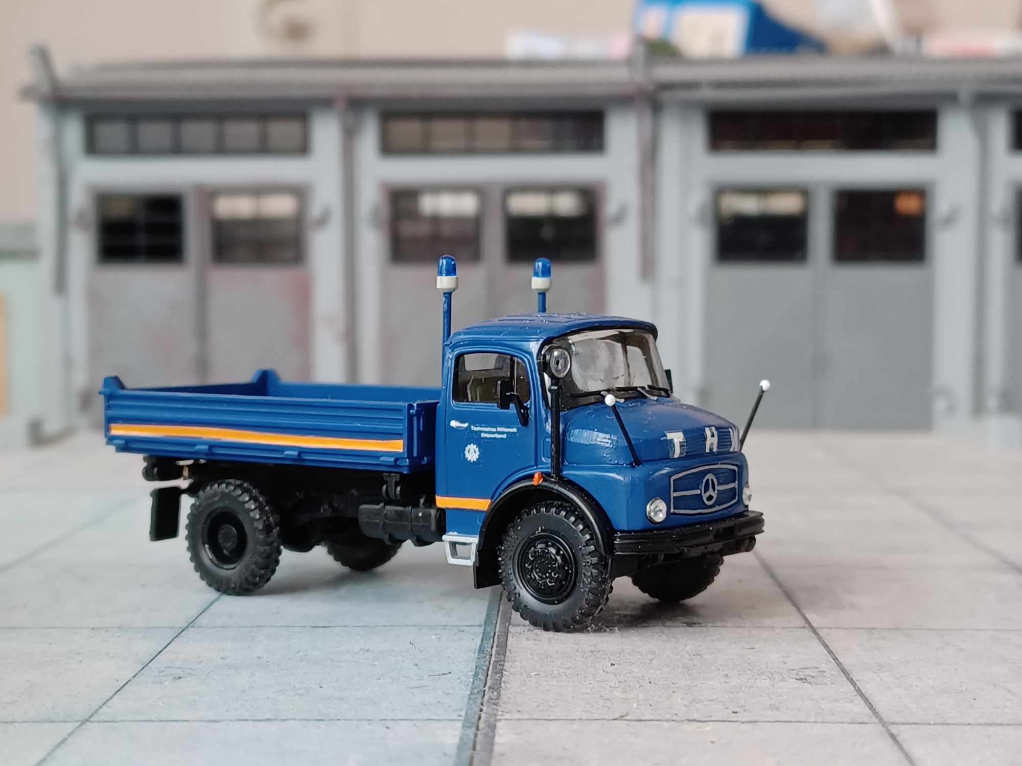 Mercedes-Benz LA 911 B/42, Dreiseitenkipper, Aufbau Meiler Modell ist von Preiser und wurde neu lackiert und mit Kleinteilen versehen