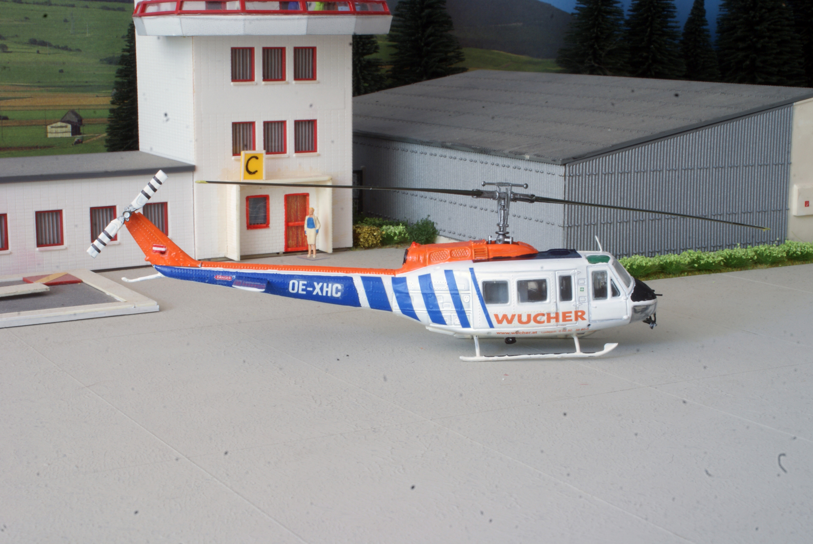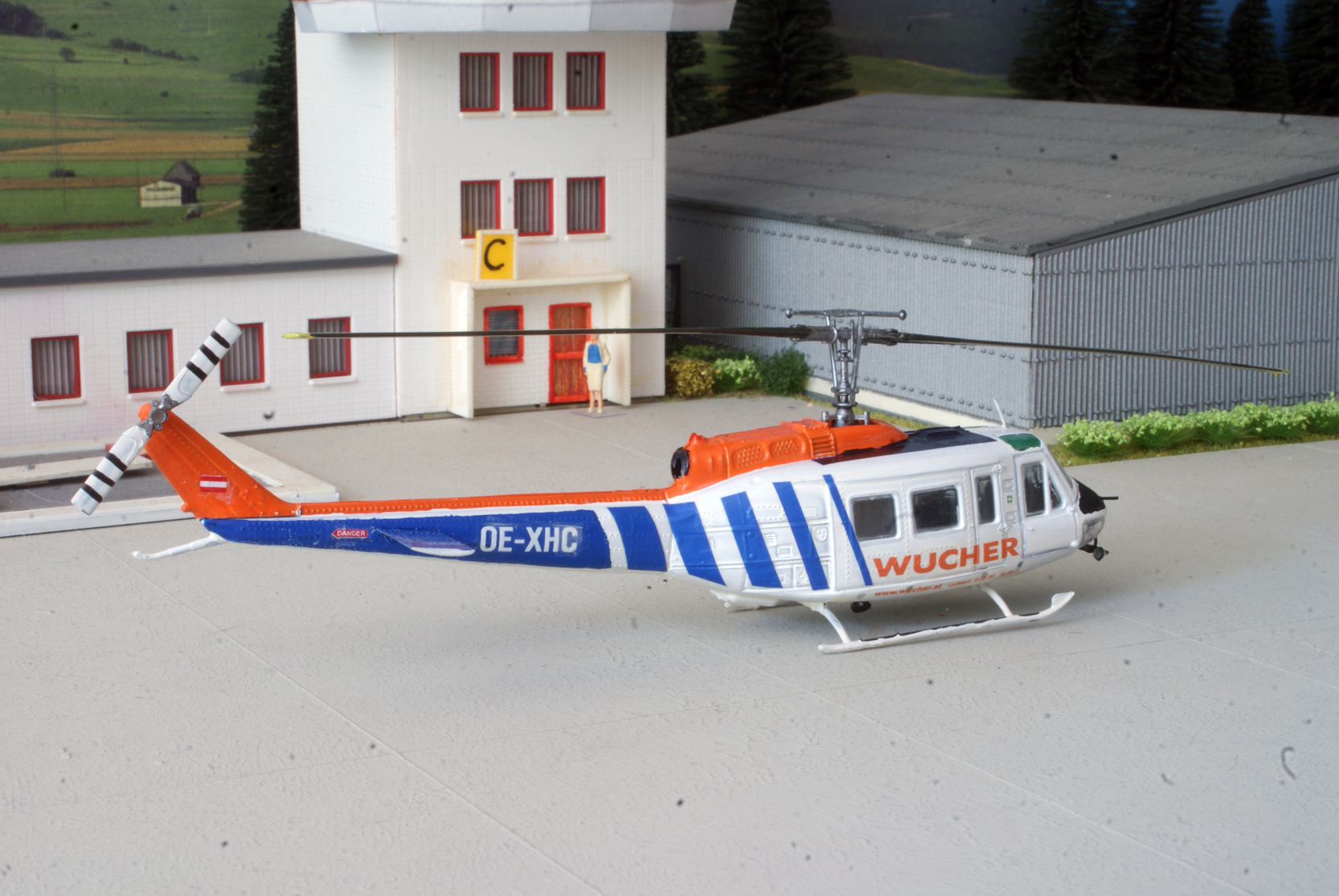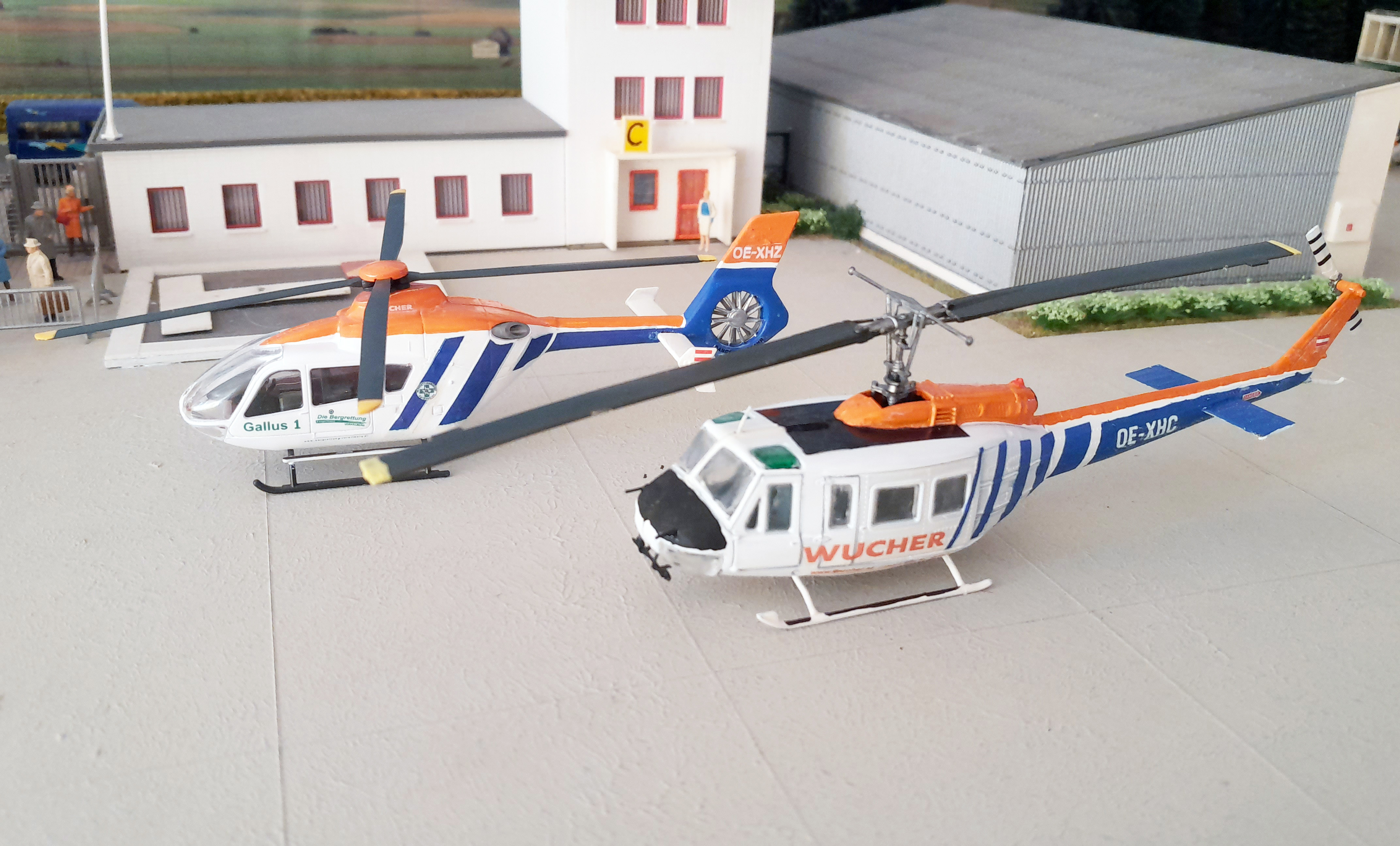 Die erste von Wucher ist Fertig, die Bell 205A1. Die bekannte Roco Hubschrauber wo ich die Heckrotor von links nach Rechts umgebaut habe und weiter die mit Spiegel und Antenne erganzt habe. Decals kommen von Heli Scale Quality, die Blaue Farbe von Elite, Mittelblau.