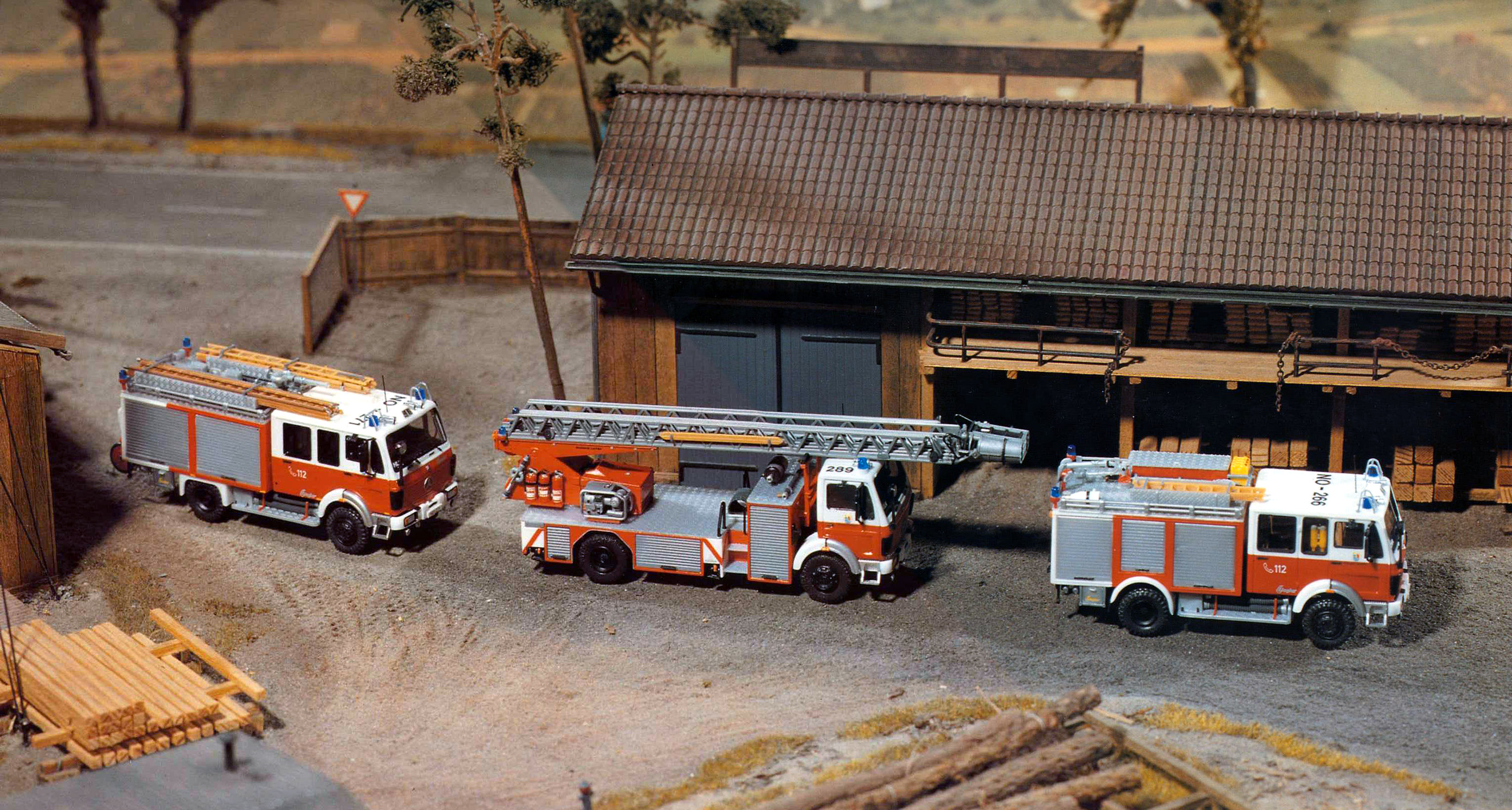 Außer auf zwei Titelfotos hatten es meine Modelle ja sogar zu einem Centerfold *) geschafft! Der Holzlagerplatz, auf dem der LZ 6 da in Bereitschaft steht, war übrigens Ideengeber für eine meiner nicht ganz unbekannten Werkfeuerwehren, nämlich der WF Lumbermill: