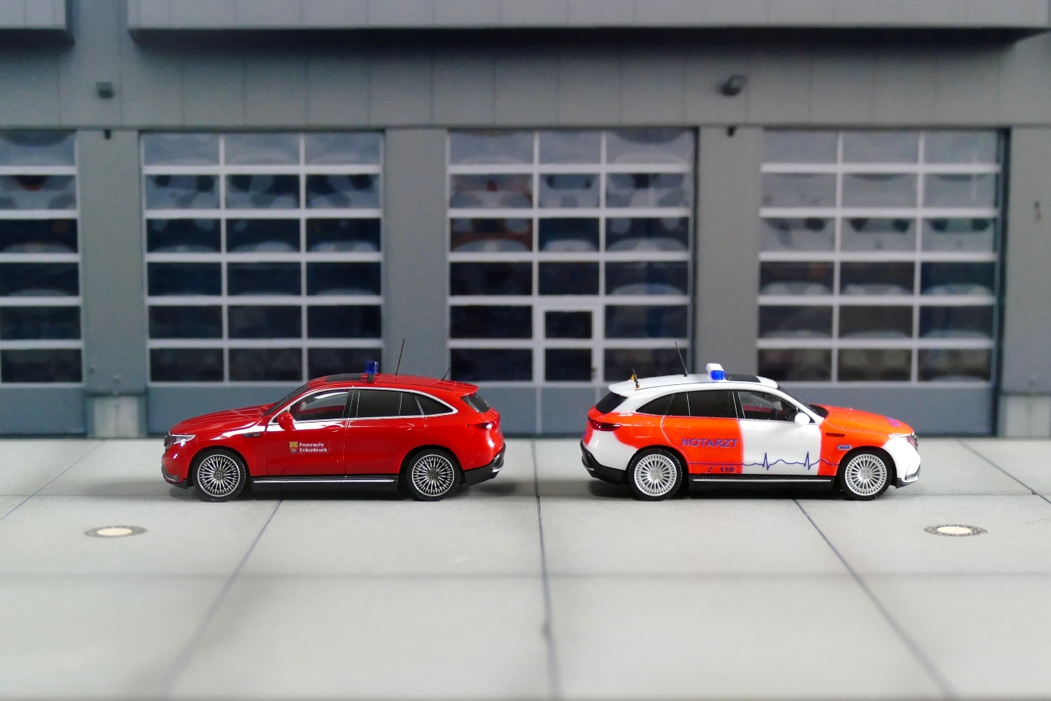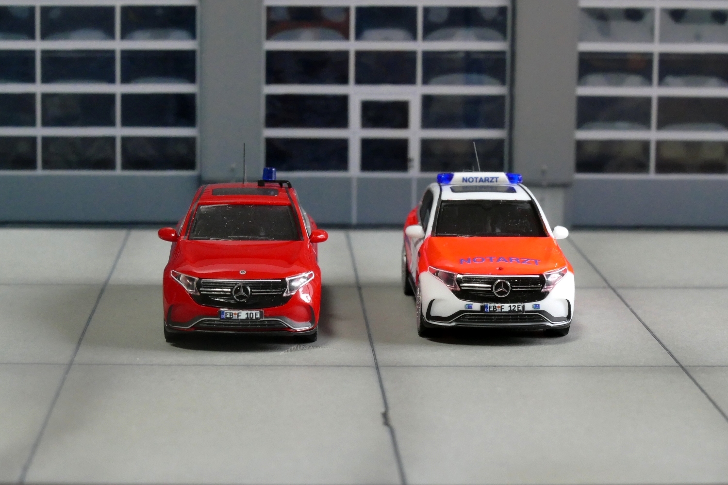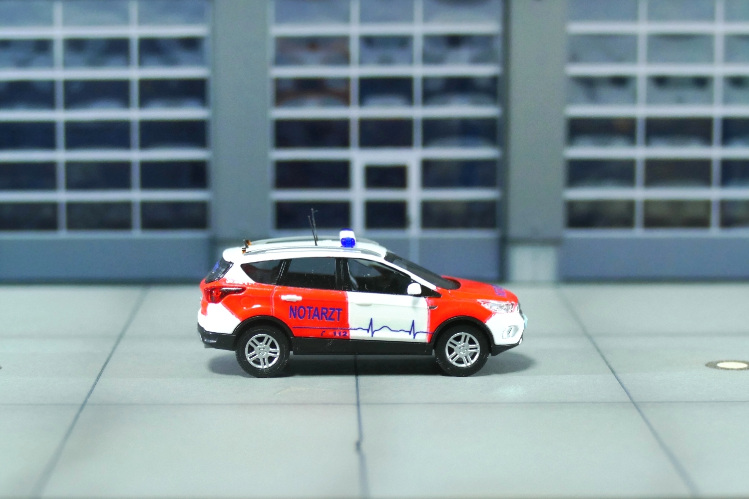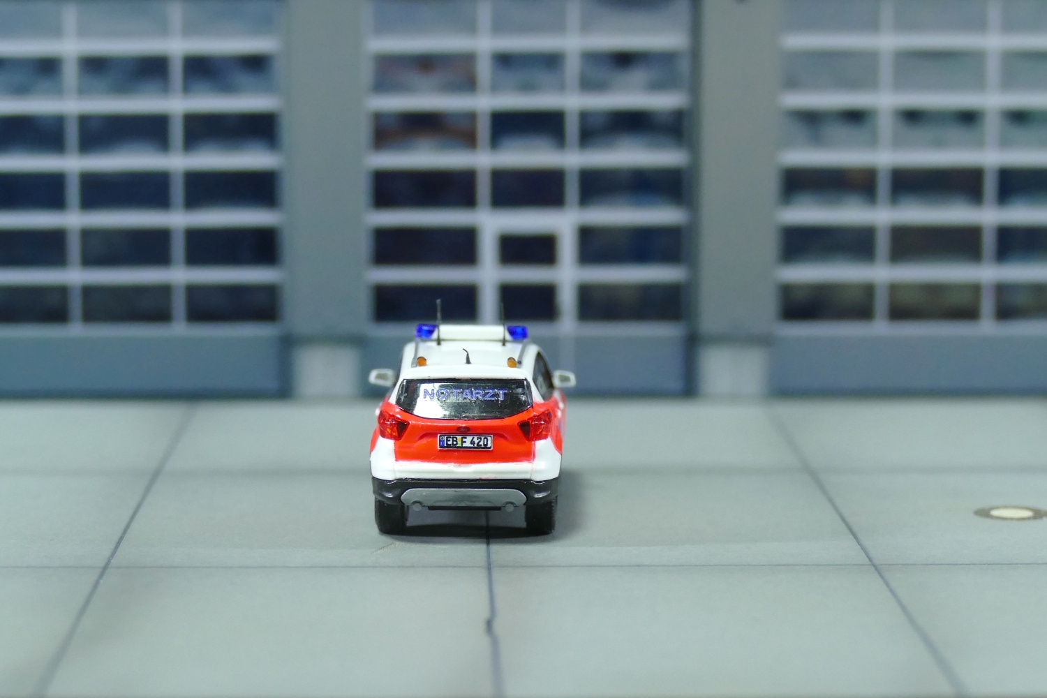 Das Notarzt-Modell wurde aus einem weißen Herpa-Modell gefertigt, das abgeklebt und lackiert wurde.
