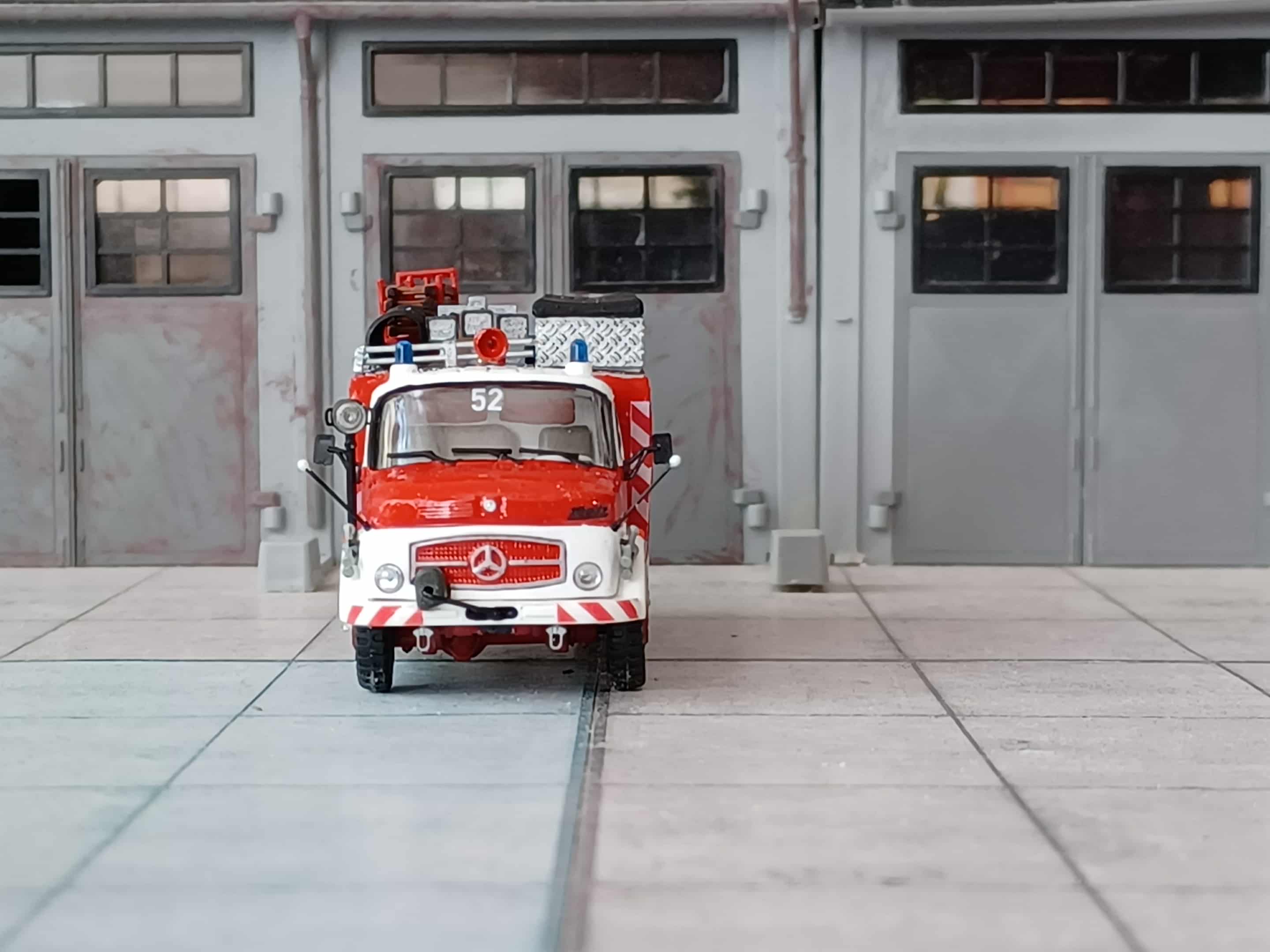 Ende der 70er Jahre wurde der Wunsch größer die alte DL 22 aus Vorkriegszeiten zu ersetzen. So wurde 1978 eine Drehleiter-Korb (DLK 23/12 St.) mit Staffelkabine auf Magirus Deutz FM 232 D 14 F, Aufbau Magirus beschafft. Das Modell entstand aus einem Roco TLF (Kabine und FG) sowie einer Preiser Drehleiter (Aufbau und FG) dazu jede Menge Kleinteile und Decals.