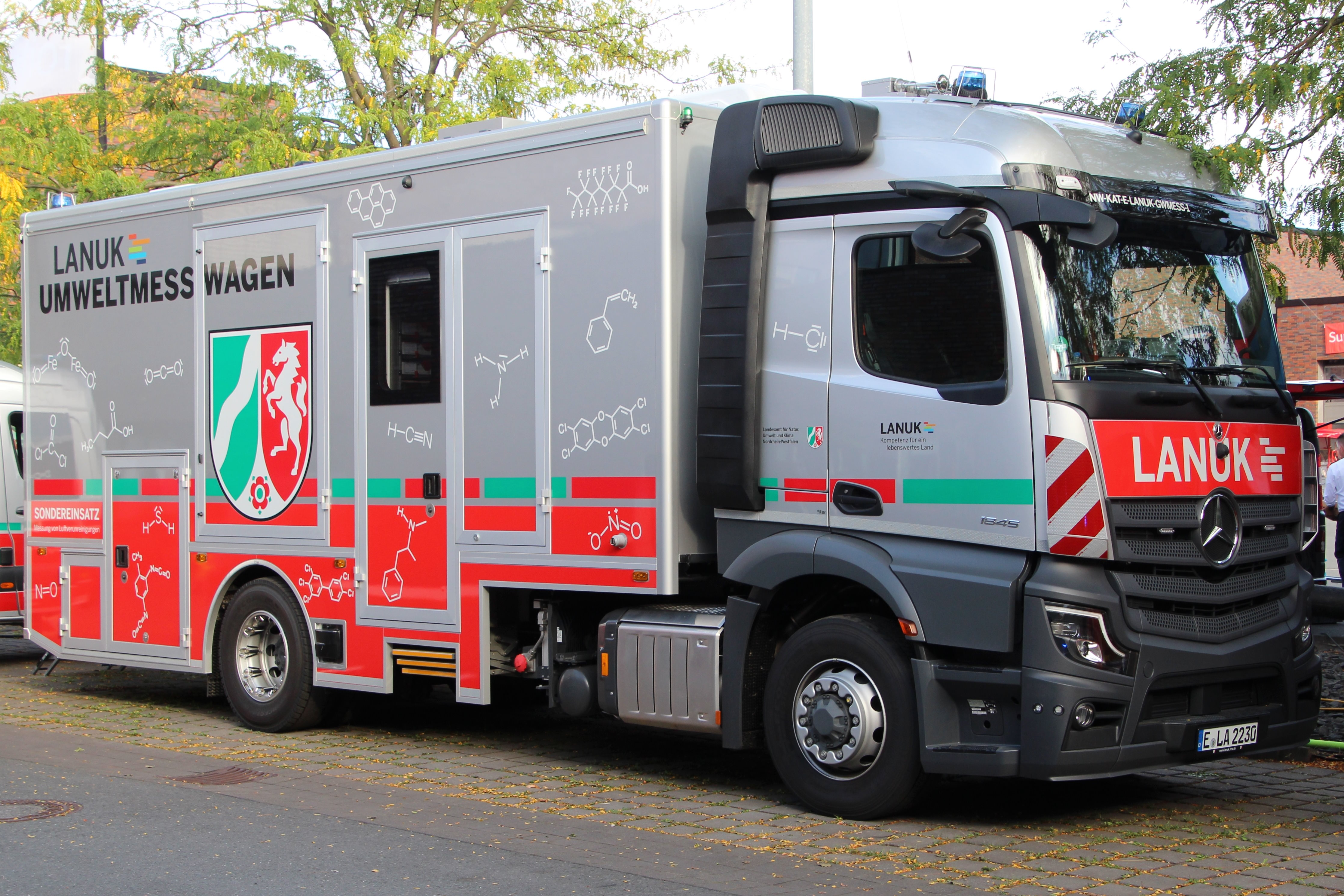 Am heutigen Tag der offenen Tür bei der Berufsfeuerwehr Essen wurde der neue Mess-LKW des LANUK erstmals der Öffentlichkeit präsentiert.