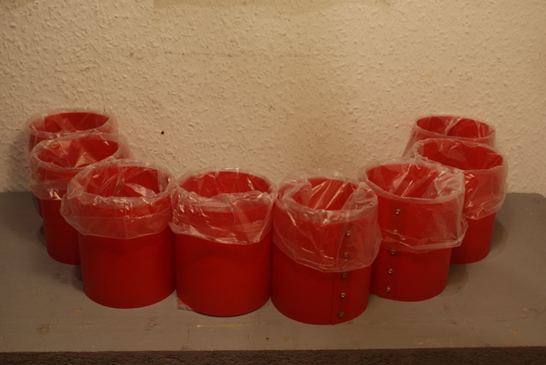 Entstanden sind die Elemente aus 0,5 mm Kunststoffsheet, 5 Stück M2- Schrauben mit Muttern und einem 1 Liter Frühstückbeutel aus Kunststoff.