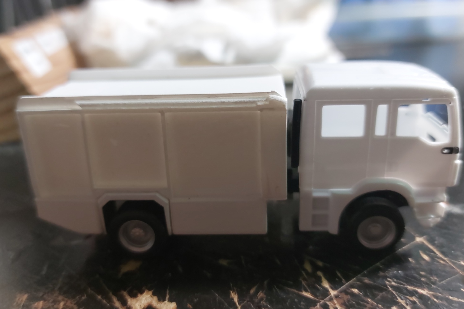 Das Fahrgestell (welches um einige Millimeter verlängert wurde) mit Bereifung und der Aufbau wurden von Allgaeu Modelle geliefert (TLF 4000 Berlin),