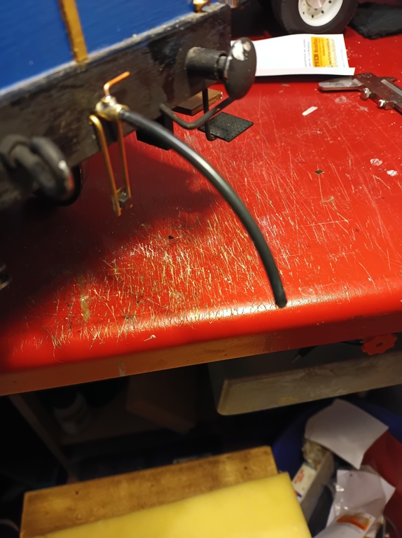 So wurden Schläuche für die Druckluftbremse nebst Absperrhahn und Halterung montiert. Die Schläuche bestehen aus silikonummantelter hochflexibler Litze. An der Frontseite ist jeweils ein 2 x 2 mm Neodym Magnet angeklebt, damit sich die Bremsschläuche problemlos kuppeln lassen. Auch gibt es einen Verlängerungsschlauch um den Waggon bei Benutzung der Abschleppstange an den Rüstwagen pneumatisch ankuppeln zu können. Hierzu wurde an der Front und am Heck des Unimog eine entsprechende magnetische Kuppelstelle angebracht. Letztlich wurden am Waggon noch die typischen Eisenbahnkupplungen angebracht. Ich hoffe das Upgrade gefällt.