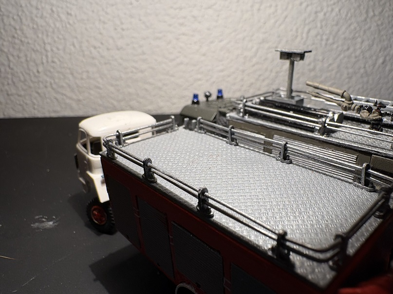 Der Aufbau ist dreiteilig. Der erste Teil mti den Gerätekästen war mal ein Stück vom Auflieger-Aufbau des Sattelschleppers.