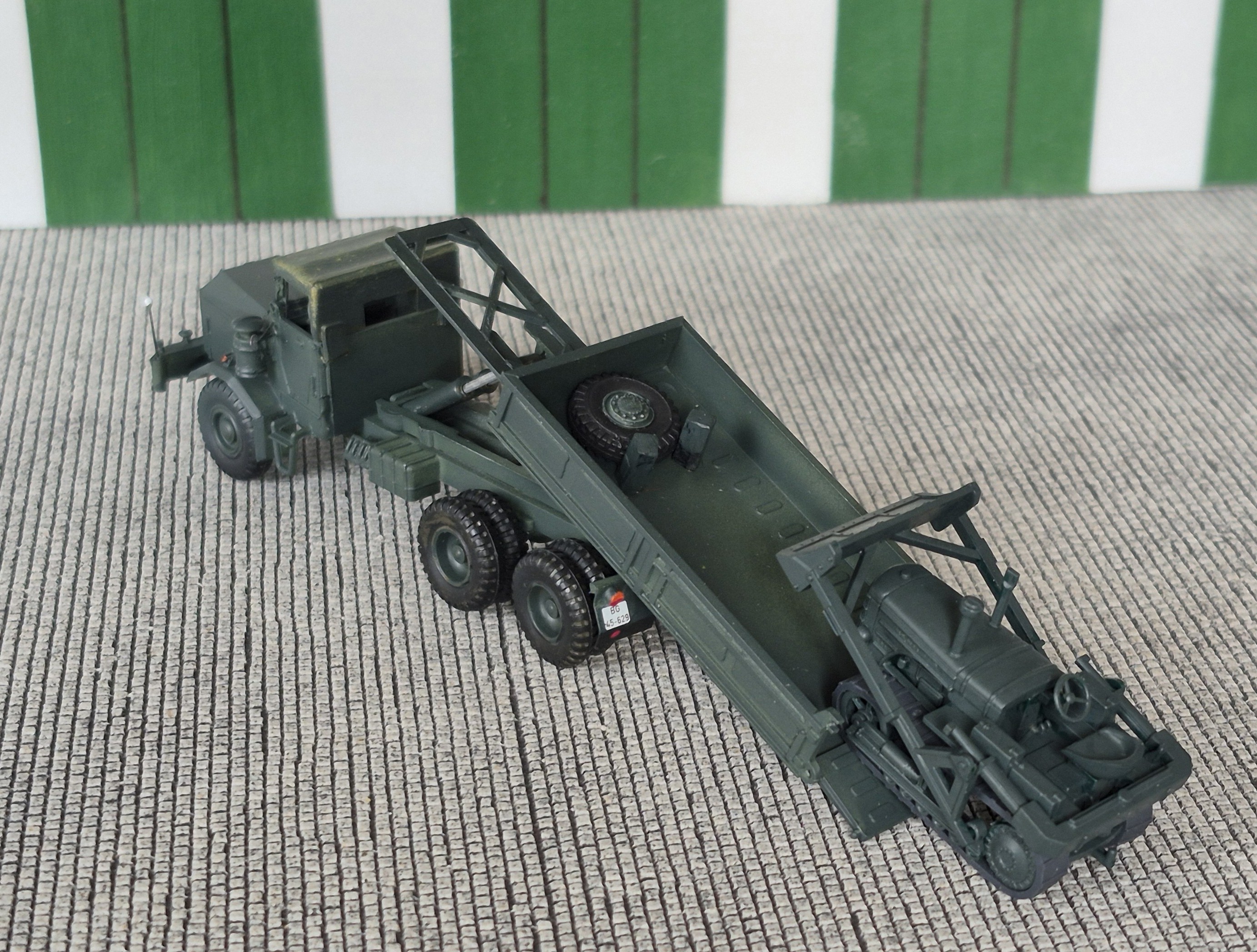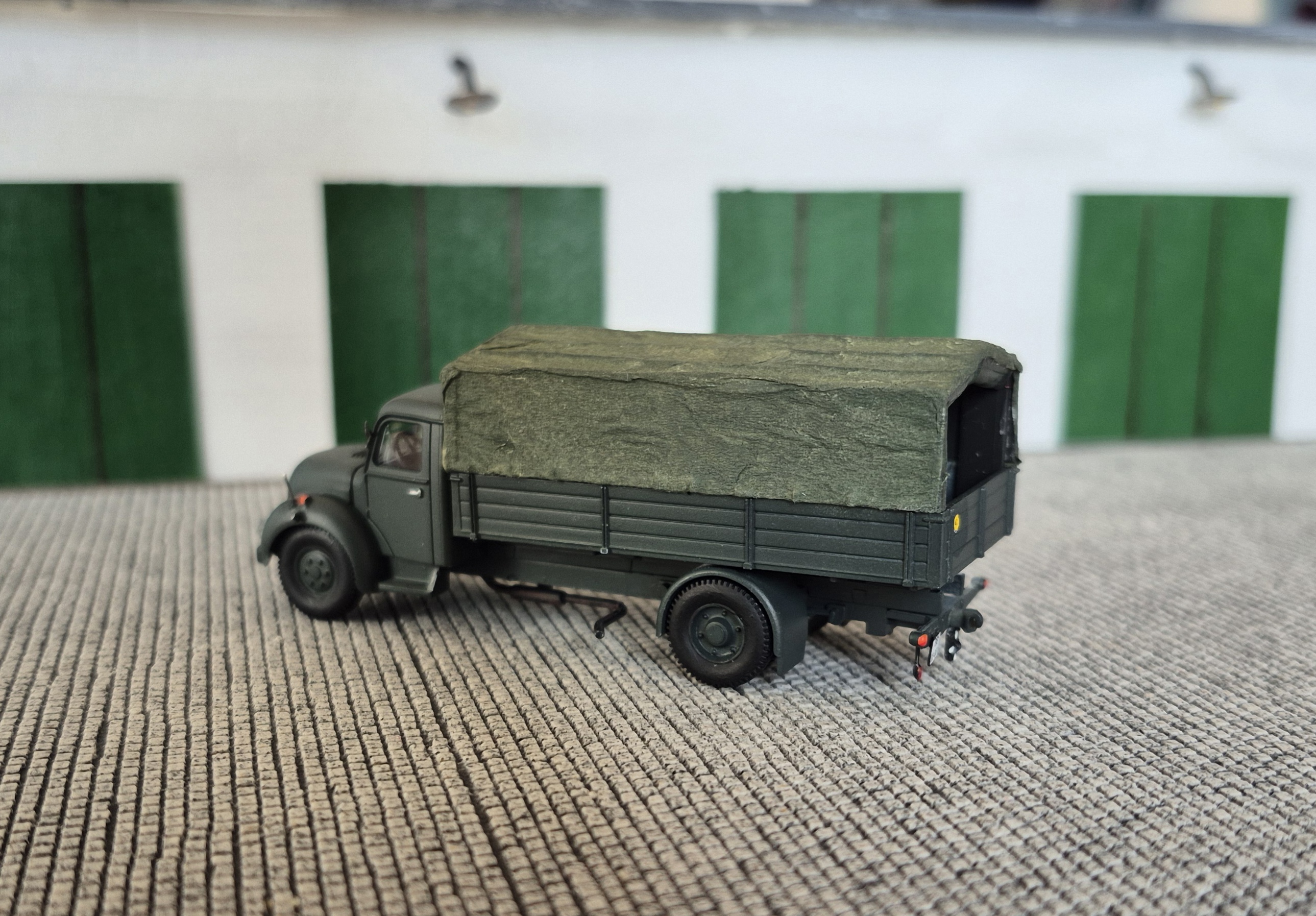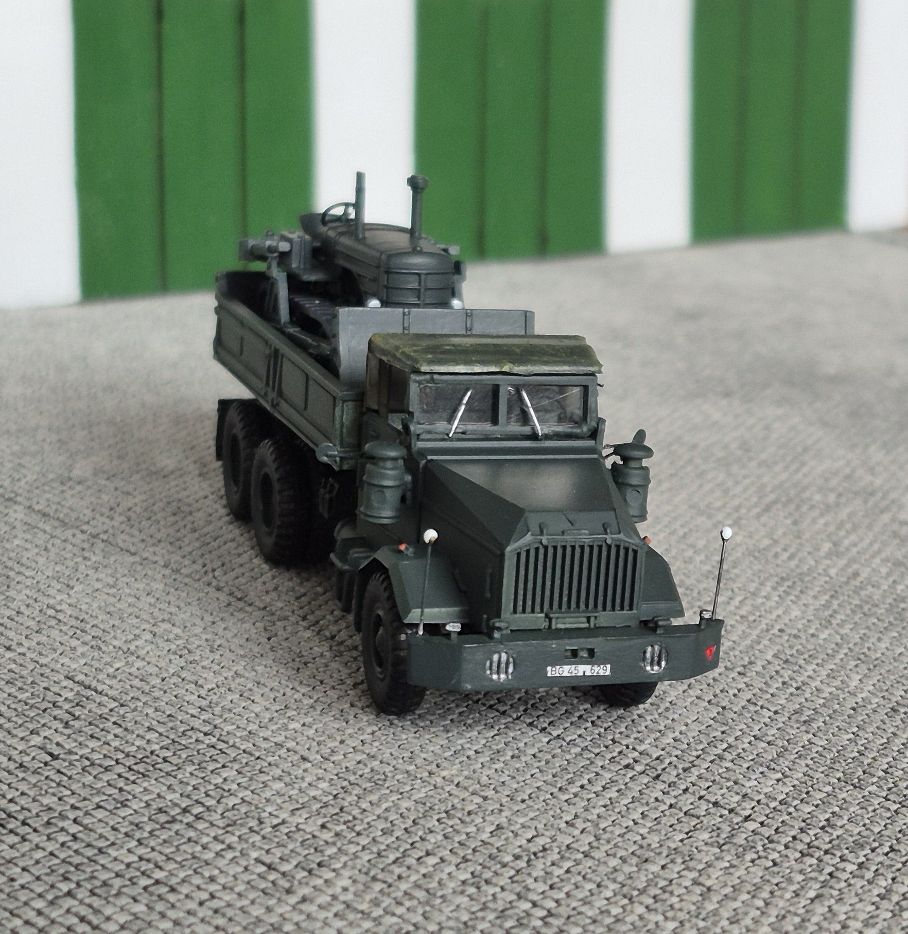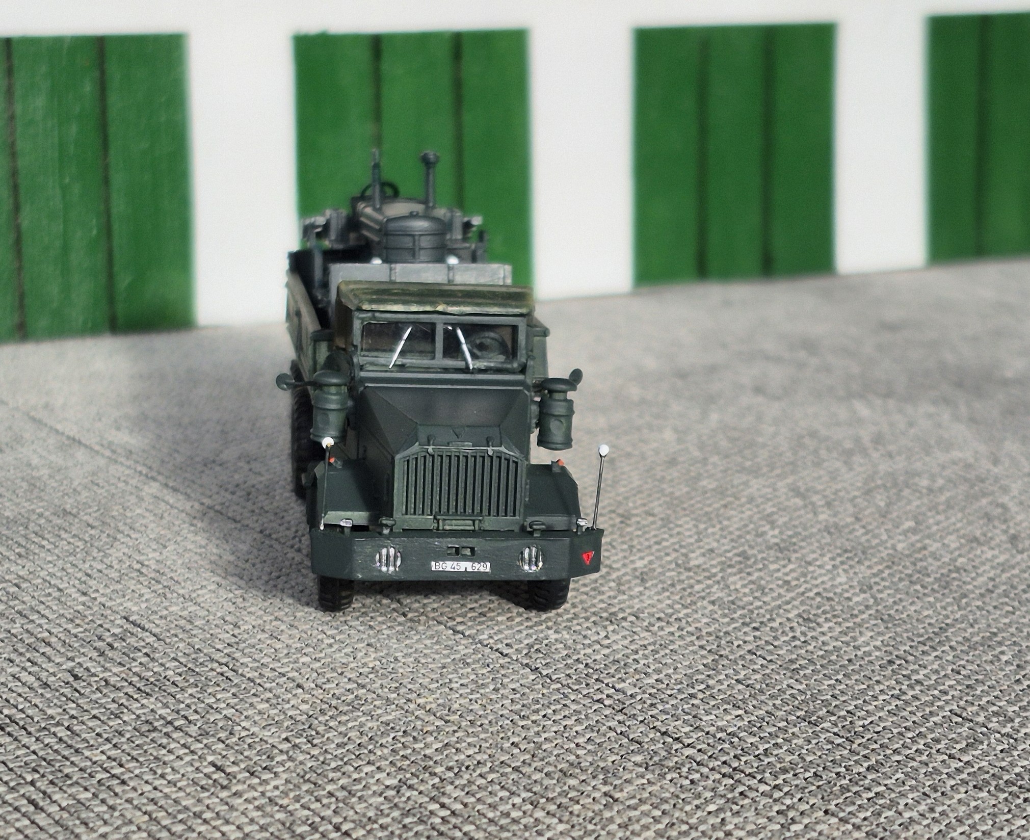 So, ich habe wieder fertig! Hat etwas gedauert, aber ich wollte unbedingt noch eine artgerechte Ladung besorgen. Habe gelesen, daß die Fahrzeuge bei der BW für den Transport von Planierraupen und Schüttgut verwendet wurden (Pioniere), dann wirds wohl bei Buschos auch nicht anders gewesen sein.