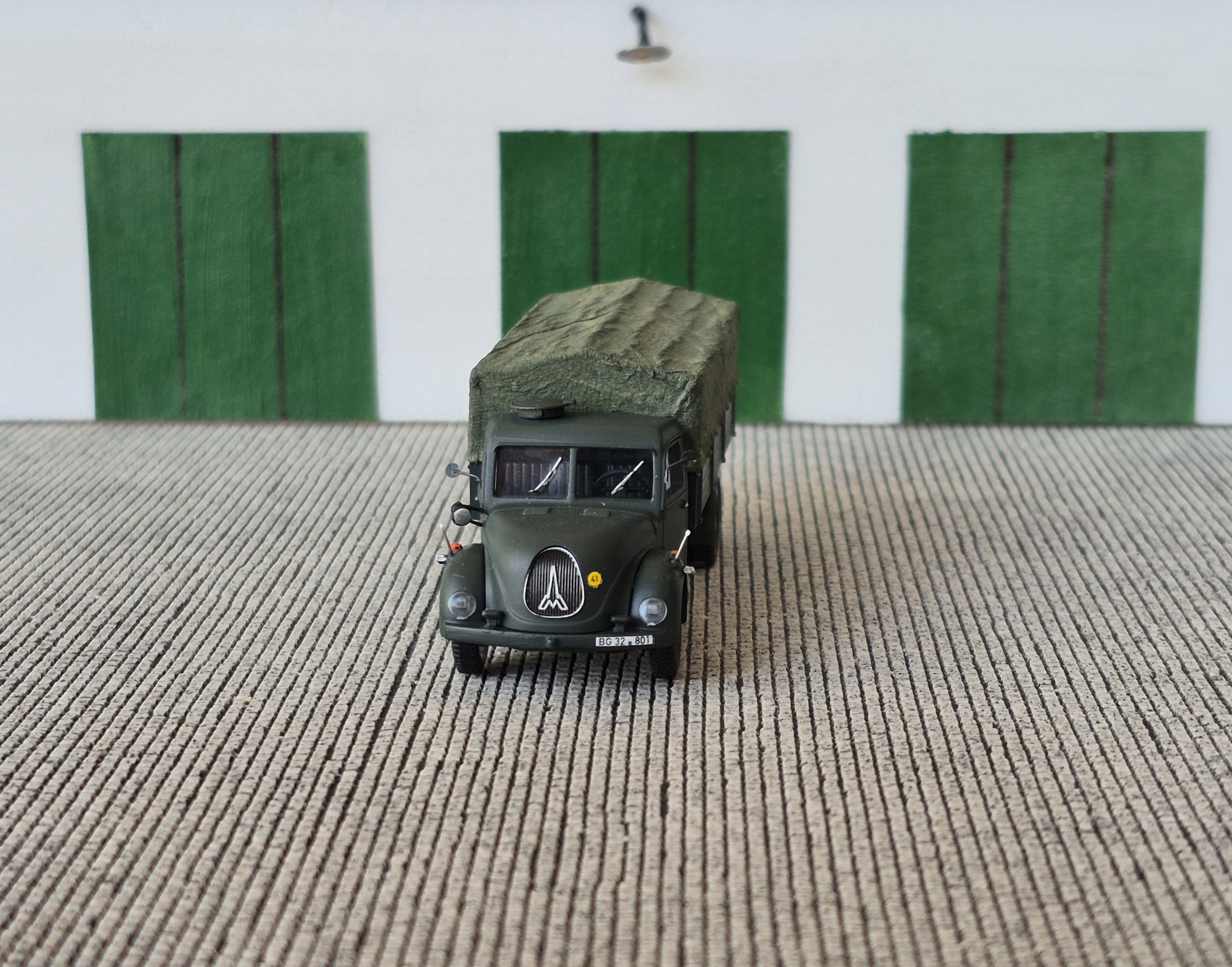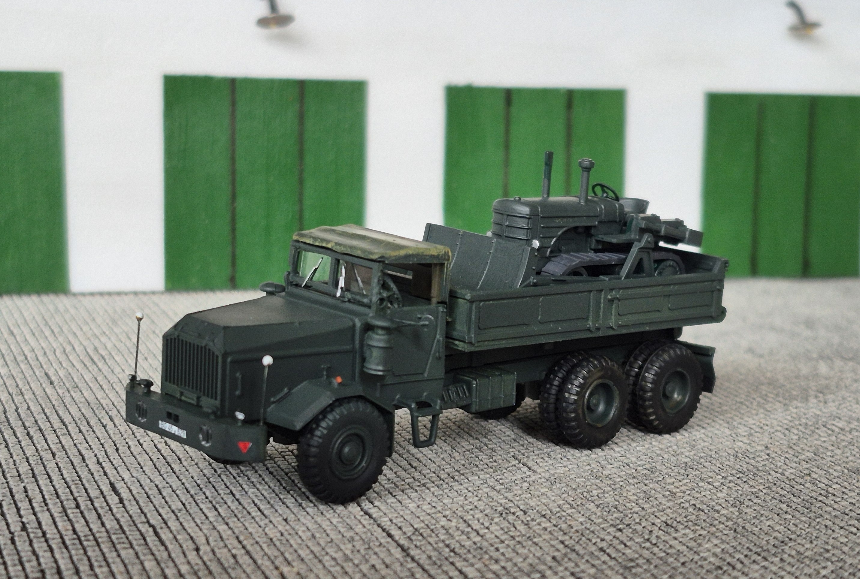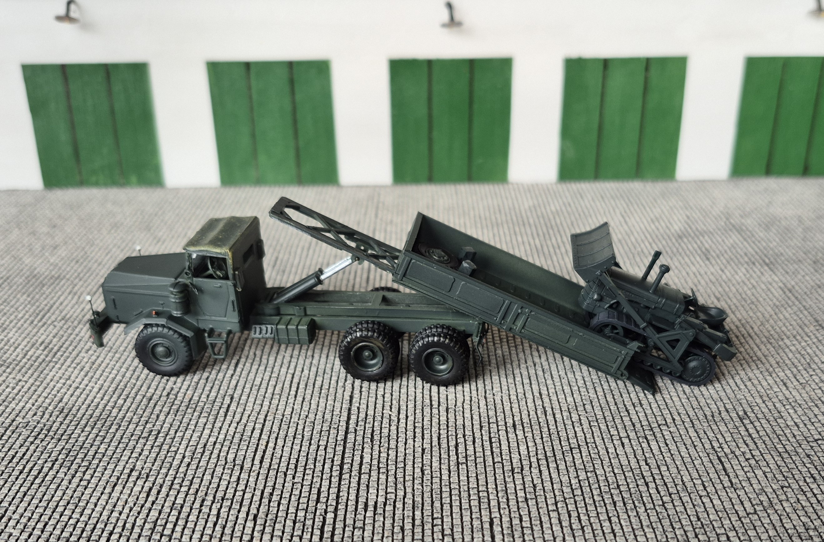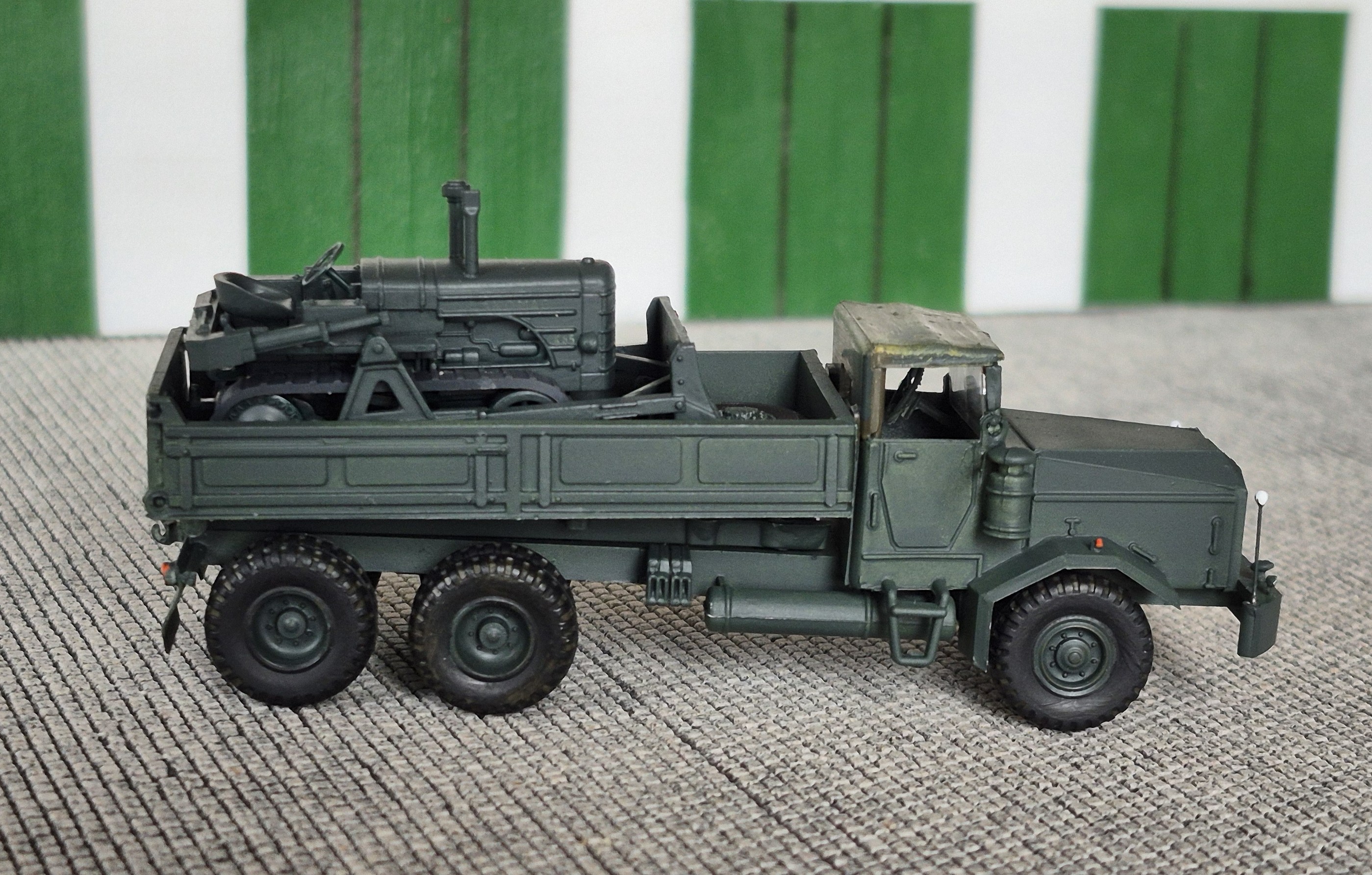 So, ich habe wieder fertig! Hat etwas gedauert, aber ich wollte unbedingt noch eine artgerechte Ladung besorgen. Habe gelesen, daß die Fahrzeuge bei der BW für den Transport von Planierraupen und Schüttgut verwendet wurden (Pioniere), dann wirds wohl bei Buschos auch nicht anders gewesen sein.