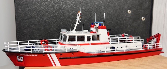 Für ein paar Minuten hatte ich ernsthaft überlegt, aus dem roten Boot ein blaues zu machen. :wink: Aber Polizeiboote sind in der Regel kürzer; und dieses Modell zu kürzen dürfte aufgrund seiner Geometrie wohl nur mit extremem Aufwand funktionieren, worauf ich nicht die geringste Lust habe/hatte. Damit war dieses Thema auch wieder durch. Na ja, so gut hätte ich es (gekürzt oder nicht) ohnehin nie hinbekommen. :oops: