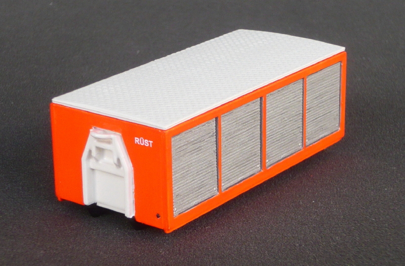 Der altbekannte Abrollbehälter aus dem Bausatz # 1116 von Preiser dient hier als fast unveränderte Basis.