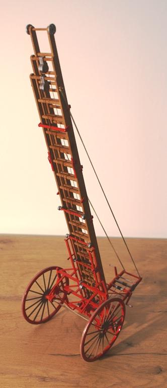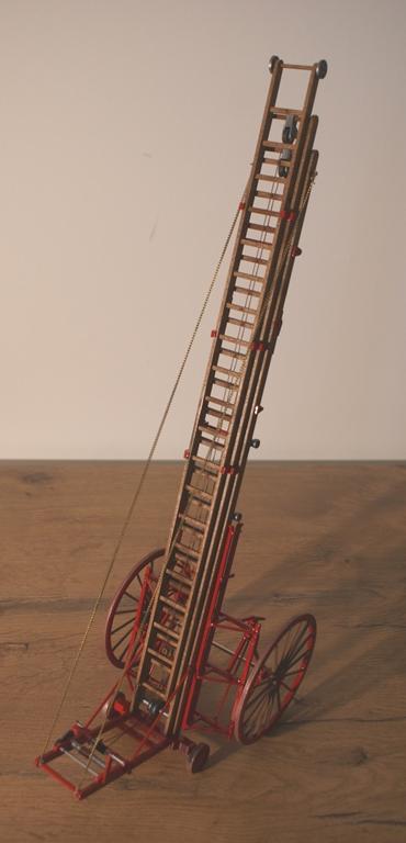 Um dem Fahrzeug noch etwas mehr Pepp zu verleihen. Überlege ich derzeit noch einen passenden Anhänger daran zu hängen. Wahrscheinlich wird es eine Anhängeleiter oder ein Leiternanhänger (Modell Schweiz). Hier gab es schon mal die ersten Stellproben. Die typisch englische fahrbare Holzleiter aus dem Bausatz möchte ich nicht nehmen, weil sie mir nicht gefällt.