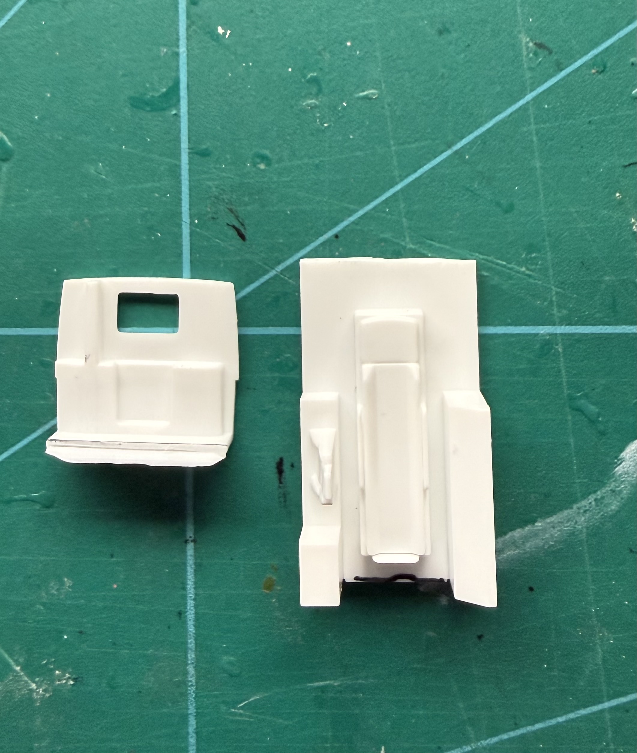In der Reslität sitzt beides beim Original weiter vorne. Da ich aber dass Modell dementsprechend nicht spachteln wollte (die Umsetzung des Grundmodells von Preiser war insgesamt gut), habe ich dieses so belassen. Das BL am Heck kommt der Klimaanlage sehr nahe. Da diese aber vom Sockel mit dem Dach eine Einheit bildet war hier keine Möglichkeit der Versetzung nach vorn gegeben.