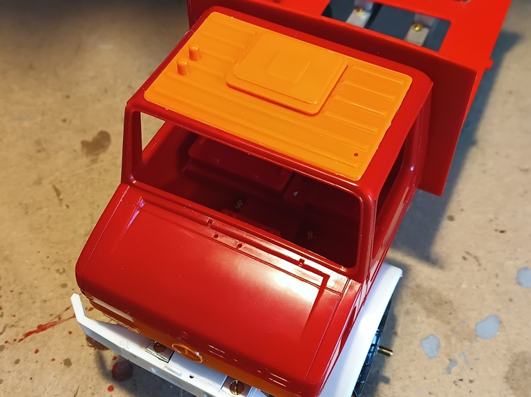 Die Idee ist jetzt ein Fahrgestell für beide Ausführungen zu verwenden und je nach Lust und Laune die Aufbauten tauschen zu können. Ebenso muss sich der mittlere Teil des Kabinendachs austauschen lassen (mit/ ohne Dachluke).