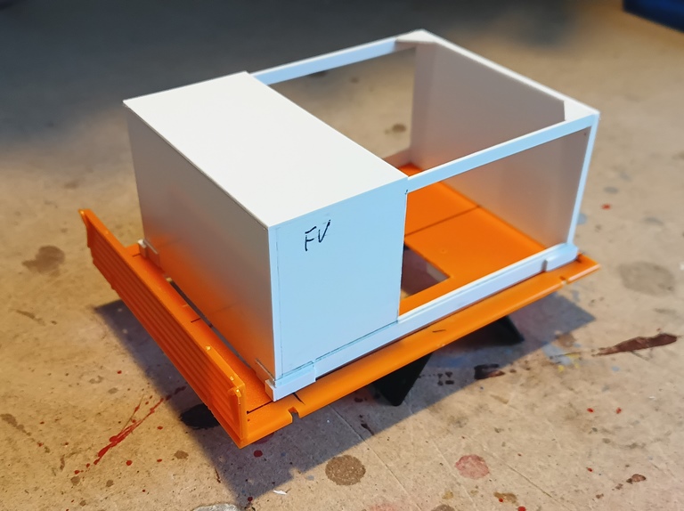 Der Container, der sich auf der Pritsche des TLF8-W befindet steht mittlerweile auch im Rohbau. Bisher konnte ich allerdings noch keine Dachansicht davon finden. Es scheint im vorderen Bereich meiner Meinung nach einen Mannlochdeckel zu geben. Aber es wird daran gearbeitet (Danke Tobias!!) Was mir gerade beim Bau des Containers aufgefallen ist wie man sich an einen bestimmten Maßstab (sonst ja 1:12) bei der Materialauswahl gewöhnt. Ich musste mehrmals anderes Material auswählen, weil einfach die Materialstärke viel zu dick für das Modell gewesen wäre.
