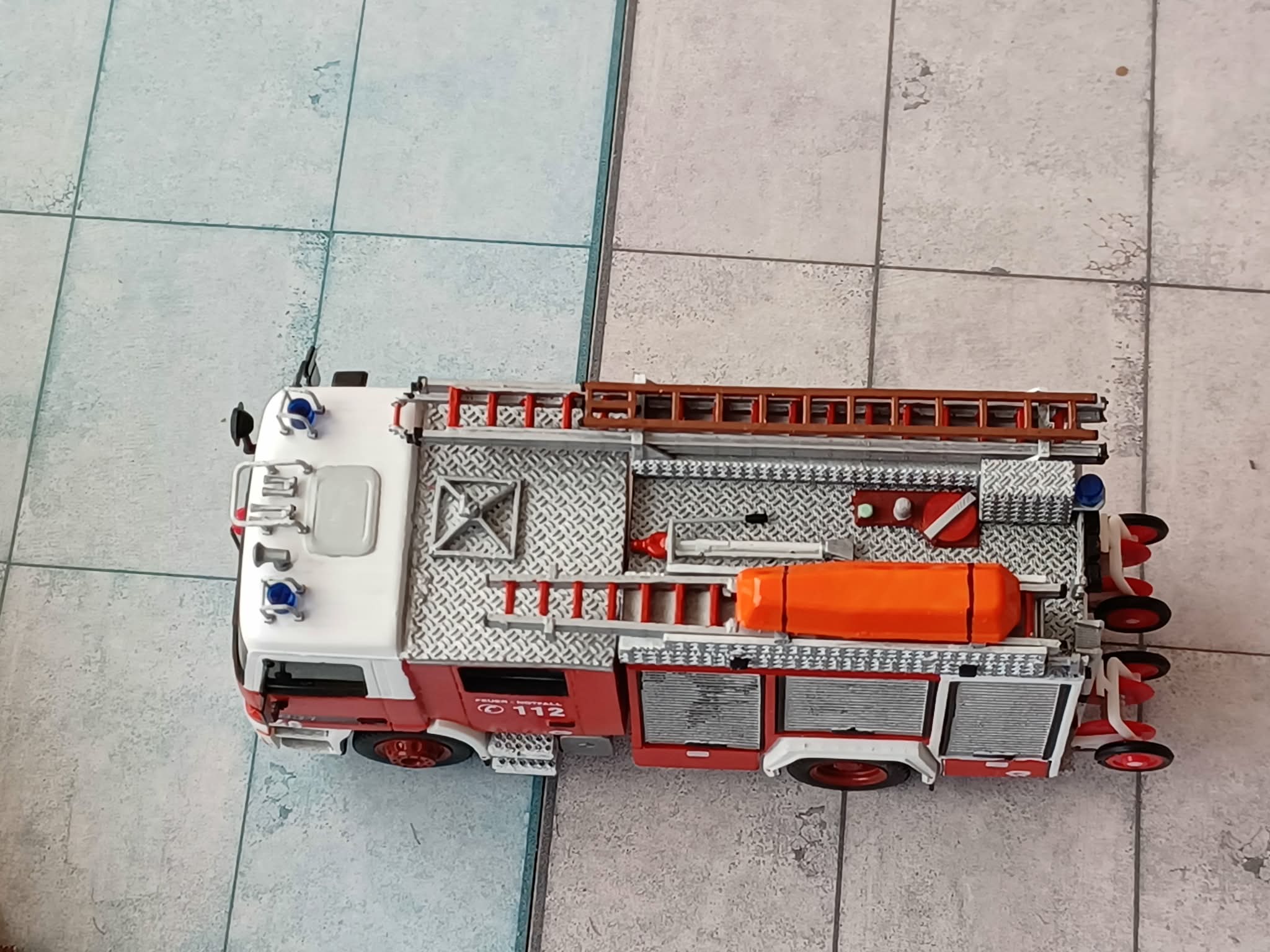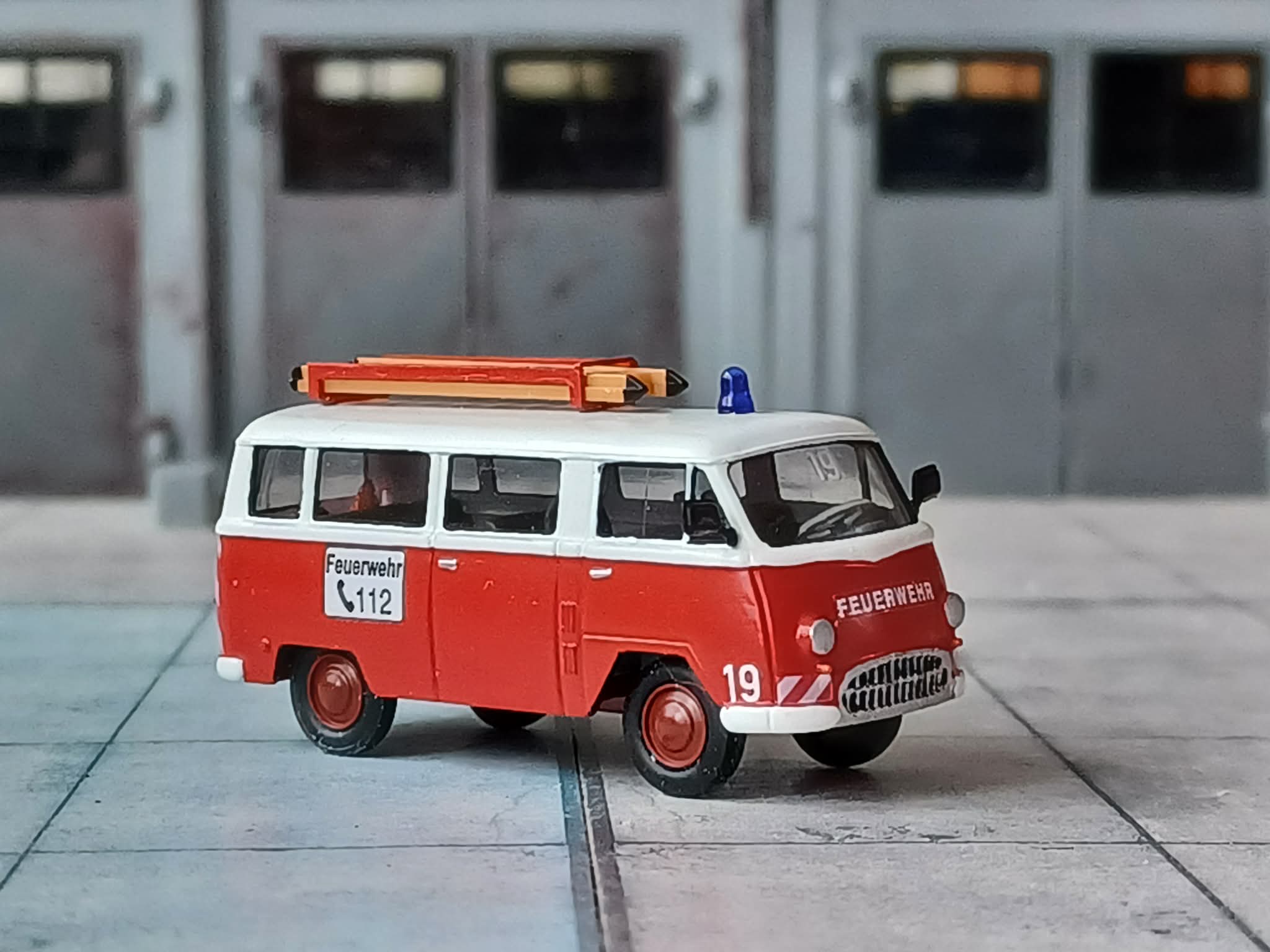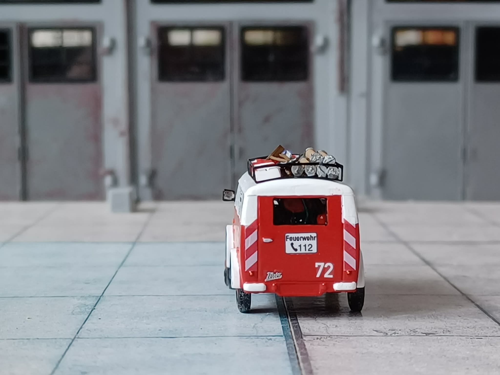 1955 beschaffte die gleiche Wehr einen Mannschaftstransportwagen. Hier wurde es ein Tempo Wiking. Das Fahrzeug transportiere die Steckleiter und Kleingeräte. Auch dieses ist bei dem Kameraden bis heute erhalten. Das Modell ist von Epoche und wurde zerlegt, lackiert und mit Kleinteilen und Decals versehen.